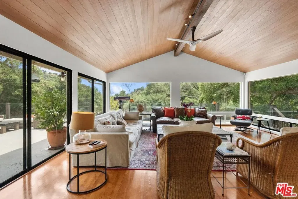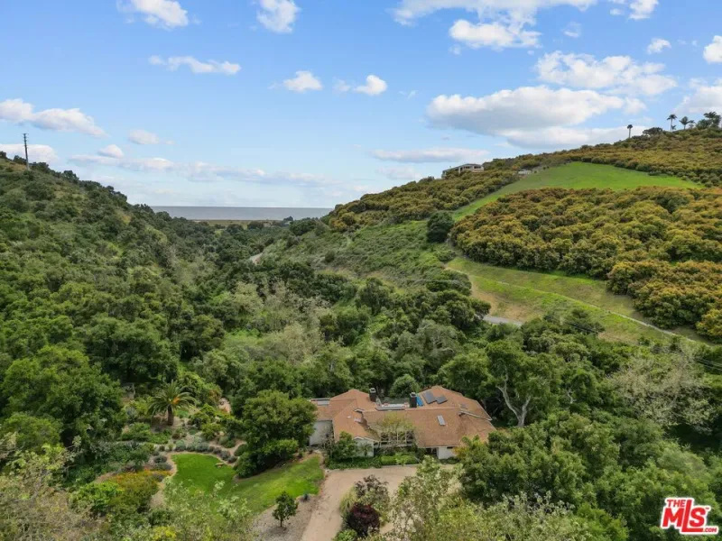 10-acre unique El Capitan Ranch offering. Exclusive coastal gated community with access to a private beach. The 4500-sf contemporary ranch home is also privately gated and features 5 bedrooms and 5 baths, including a guest suite and media/game room. It is open, light, and bright, with vaulted ceilings, chef’s kitchen, butler’s pantry, 3000-bottle temperature-controlled wine room, solar w/battery backup, and Tesla charging. The lush, park-like setting is breathtaking, with a running stream, 15′ waterfall, swimming hole, tropical walkways, oaks, and sycamores. A true one-of-a-kind property.