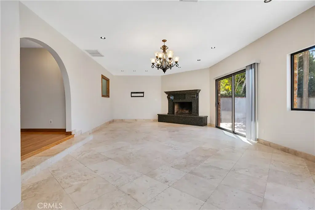 Tucked behind gates on a tree-lined Granada Hills street, 10835 Petit Avenue delivers timeless ranch-style character with a rare guest house setup—ideal for today’s lifestyle. A covered portico and carport introduce the home’s original brickwork, setting the tone for the warmth found throughout: freshly painted interiors, vintage hardwood floors, and sun-filled living and family rooms—each anchored by its own fireplace and framed by serene pool views.