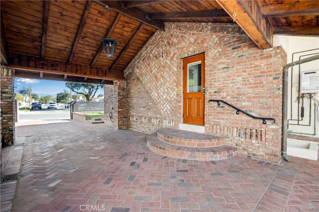 Behind the scenes, meaningful upgrades elevate peace of mind: dual tankless water heaters, newer copper plumbing throughout, and multiple HVAC systems. Outside, the property is set back and privately secured with two separate driveways, including a covered carport behind an electric gate, a fenced front lawn, and generous brick-and-concrete hardscape for abundant parking. The backyard is a true sanctuary with a sparkling pool, reclaimed brick patio, and mature trees—an inviting setting for both entertaining and quiet evenings at home.