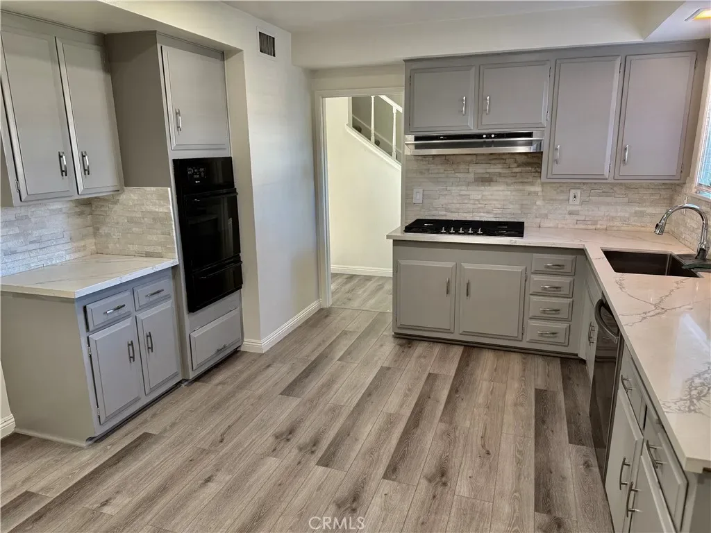 WOW!! This home is like new with newer kitchen, paint, laminate flooring downstairs, tile in bathroom floors and more. Newer vinyl windows installed a few years ago. Large living room with cozy fireplace. The formal dining could be a family room it’s so big. 2 bedrooms and full bath downstairs and two bedrooms and bath upstairs. Large double attached garage with direct access to house. Located North of Rinaldi and west of Balboa in nice Granada Hills neighborhood. Close to freeway access. Also award winning schools!! Sorry no pets.