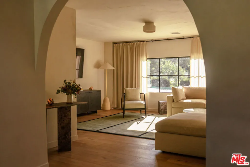 A rare convergence of Scandinavian restraint and Southern California ease, this reimagined Granada Hills residence by Working Holiday Studio presents a masterclass in elevated modernism. Poised directly on the scenic golf course of Knollwood Estates, the property offers an expansive sense of place that mirrors its refined interior. Plus, this residence is an exceptional income generator, earning over $160,000 in rental revenue in 2025 alone. Every surface, system, and detail has been thoughtfully reconsidered, resulting in a home that feels both serene and utterly contemporary.The transformation is comprehensive. A complete infrastructure overhaul includes new electrical and plumbing systems, HVAC, and a tankless water heater, while upgraded insulation and All Weather Architectural aluminum-clad double-pane windows ensure year-round comfort. New skylights draw natural light deep into the interior, illuminating walls finished in Portola limewash paint and Roman clay. Underfoot, the narrative shifts between warm Scandinavian oak hardwood and handmade brick floors, a textural dialogue that anchors the home’s material authenticity. The kitchen stands as the design centerpiece: imported Danish cabinetry from Reform pairs with Fisher & Paykel smart appliances and Caesarstone countertops, while Kohler fixtures and an integrated filtration system elevate everyday rituals. The bathrooms continue this refined sensibility with custom vanities featuring Reform’s Danish cabinetry, travertine and marble countertops, handmade ceramic tile, and Kohler fixtures throughout. Designer lighting punctuates each space with sculptural intention, while updated closets provide seamless storage solutions. Outside, smart landscaping, lighting, and a new irrigation system frame thoughtfully curated plantings. A pool provides a central feature for outdoor leisure and is seamlessly integrated into the landscaped grounds, all set against the verdant backdrop of the golf course. A Rivian electric car charger signals forward-thinking infrastructure, while the restored fireplace nods to timeless gathering spaces. This is architecture as curation, a home stripped to its essence and rebuilt with uncompromising attention to craft, materiality, and the art of living well. Can be sold with furnishings (negotiable) and location assets, including photography, website, bookings, and location rental accounts.