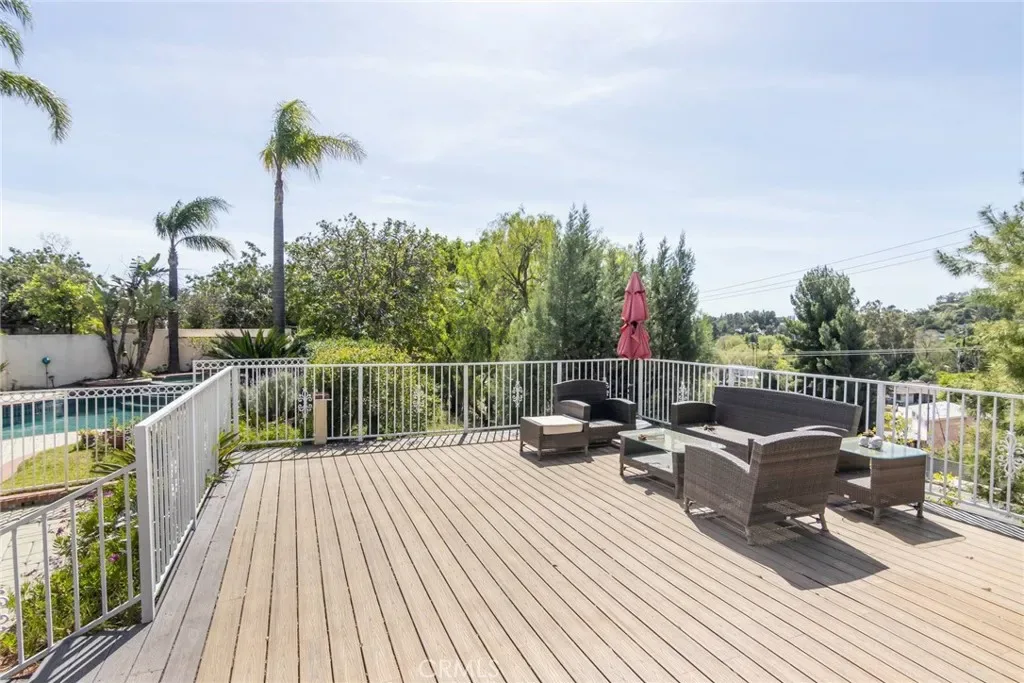 This Wonderful and Spacious 5 Bedroom, 3 Bath Home, with upgrades throughout, features a Sparkling Pool on a Huge Lot in the Prestigious Knollwood Area of Granada Hills. Tucked at the end of a Cul-de-sac, don’t miss this mostly furnished beauty. The Living Room features a Fireplace, soaring ceilings, and the raised formal dining area leads to a lovely covered patio for alfresco dining that looks over the pool area. The Large Open Kitchen has a breakfast area that leads to a cozy step down family room with a second fireplace. Both the breakfast area and family room lead to the ample rear yard with grassy area, wooden deck with a view, and the beautiful, fenced pool area. This is outdoor living at it’s finest. On the first floor you will also find a bedroom with an attached bath, also, there is a laundry room off of the family room that leads to the direct access, two car garage. Upstairs is a Large Master Suite with a balcony and a view and features a large walk-in closet, and private bath that include double sinks. You will find three more good sized bedrooms and a full bath upstairs. Available partially furnished or unfurnished. Don’t miss this one, it will go fast.