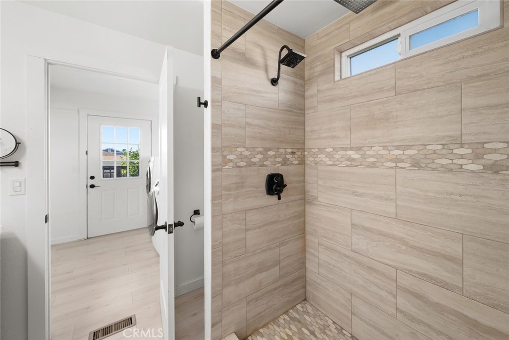 Upgrades throughout include Milgard Tuscany windows and doors, luxury vinyl plank flooring, recessed lighting, modern fixtures, and energy-efficient HVAC system with AC mini split for independent climate control of front and back of home.