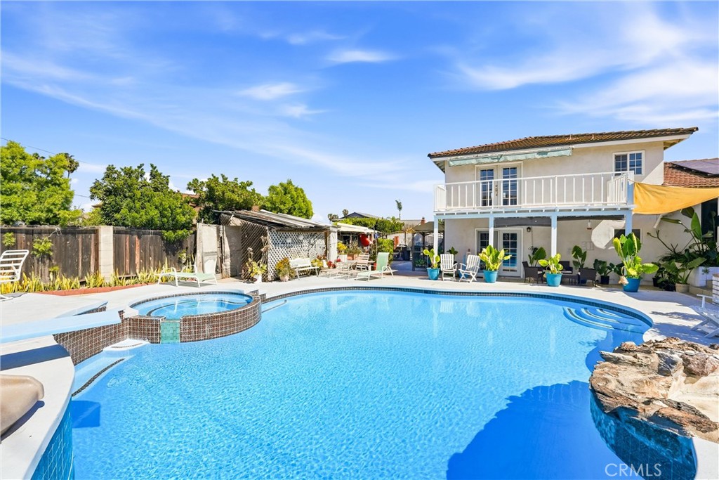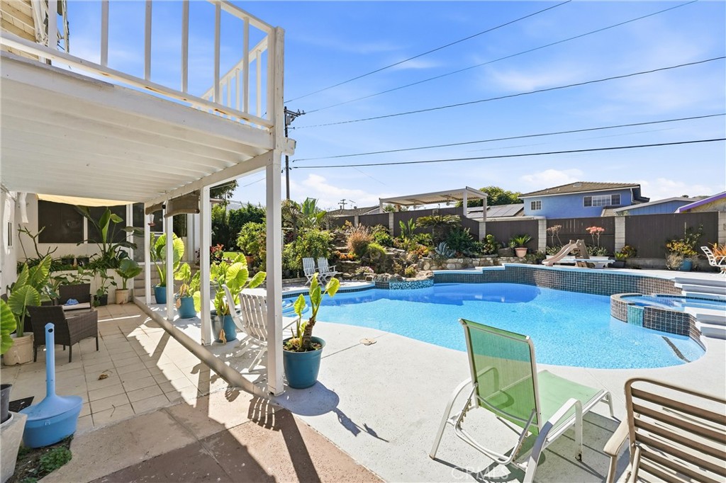 Located on a cul-de-sac in Hacienda Heights, this 4-bedroom, 2-bathroom single-family home offers 2,095 square feet of living space on a 10,523 square foot lot. The property combines several high-demand features including a pool and spa with waterfall, solar, RV parking, and a 3-car garage—features that are increasingly difficult to find together in Hacienda Heights. The split-level floor plan provides functional separation of space, with three bedrooms and one bathroom located upstairs, while the primary suite is privately situated on its own level. This layout works well for buyers seeking multigenerational living, added privacy, or flexible use of space. The home includes an updated kitchen with custom wood cabinetry, stone countertops, tile flooring, and a full backsplash, along with ample storage and workspace. The adjacent dining and living areas feature recessed lighting and a layout that supports both daily living and entertaining. A sunroom addition expands the interior footprint and offers versatile use as a home office, gym, or secondary living area. Natural light and multiple living zones enhance the overall functionality of the home. The backyard is designed for both entertaining and everyday use, featuring a pool and spa with a rock-accented waterfall, multiple patio areas, and mature landscaping that provides privacy. In addition to the pool area, the property includes a separate grassy yard, offering usable outdoor space for recreation, pets, or gatherings—an uncommon feature among pool homes. An elevated balcony overlooks the backyard, adding another outdoor seating or viewing area. Additional highlights include solar for energy efficiency, RV parking with gated access, a 3-car garage, and an extended driveway with ample parking. The lot size and layout provide a combination of usable yard space and functional improvements. Conveniently located near local parks, hiking trails, schools, shopping, dining, and freeway access, the home offers both neighborhood setting and commuter accessibility. This is an opportunity to own a Hacienda Heights home with a pool, large lot, paid solar, and RV parking in a cul-de-sac location.