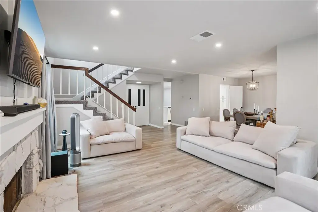 Welcome to 1973 Clear River Lane, a beautifully maintained residence nestled on a peaceful cul-de-sac in one of Hacienda Heights’ most desirable neighborhoods. This inviting home offers comfort, functionality and upgrades throughout. Step inside an open and airy floor plan filled with natural light. The spacious living room features a cozy fireplace, creating the perfect setting for gatherings or relaxing evenings at home. The dining area flows seamlessly into the living room, enhancing the home’s open feel and ideal layout for entertaining. The updated kitchen showcases stylish countertops with bar-stool seating, recessed lighting, and included appliances — refrigerator, dishwasher, stove, and microwave — making this space both modern and move-in ready. Just off the kitchen, a versatile den/office space provides the perfect area for remote work, study, or a playroom. The primary bedroom suite includes a bathroom with his-and-hers sinks, offering added convenience and functionality. Outdoor living is a standout feature of this property, offering two separate patio areas — one in the backyard and another along the side of the home — ideal for entertaining, outdoor dining, or relaxing. The expansive side yard provides exceptional flexibility with room for gardening, recreation, storage, or potential future enhancements.