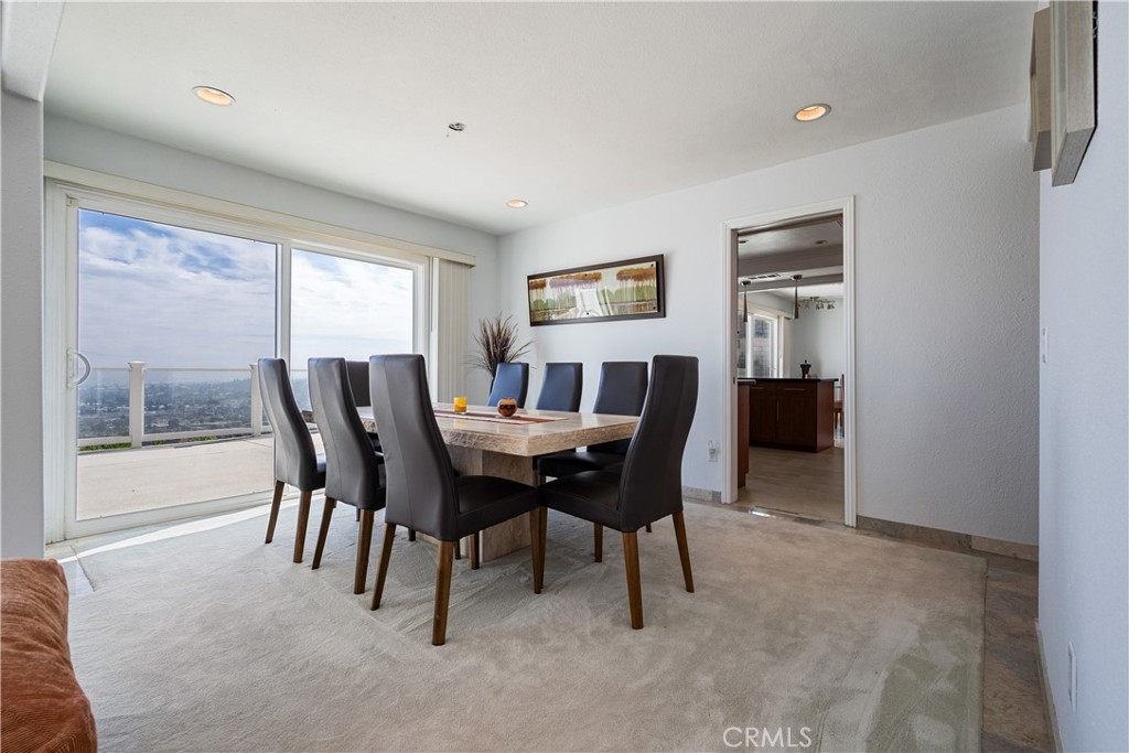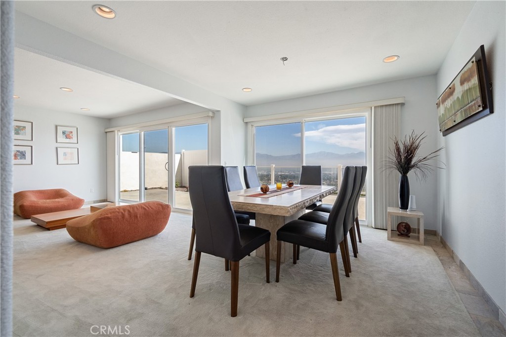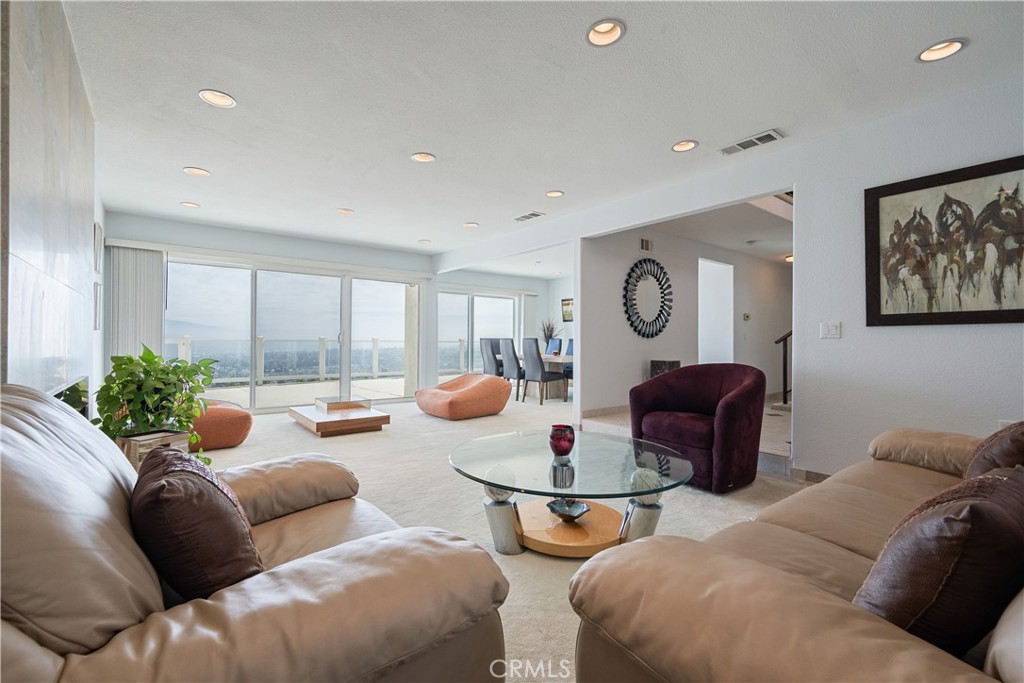 Step through the impressive double door entry into a light-filled interior featuring fresh interior (downstairs only) and exterior paint (whole house), smooth ceilings, and recessed lighting throughout. The expansive formal living room is bright and inviting, complete with a stunning fireplace and sliding glass doors that perfectly frame the incredible views—creating a seamless indoor-outdoor connection.