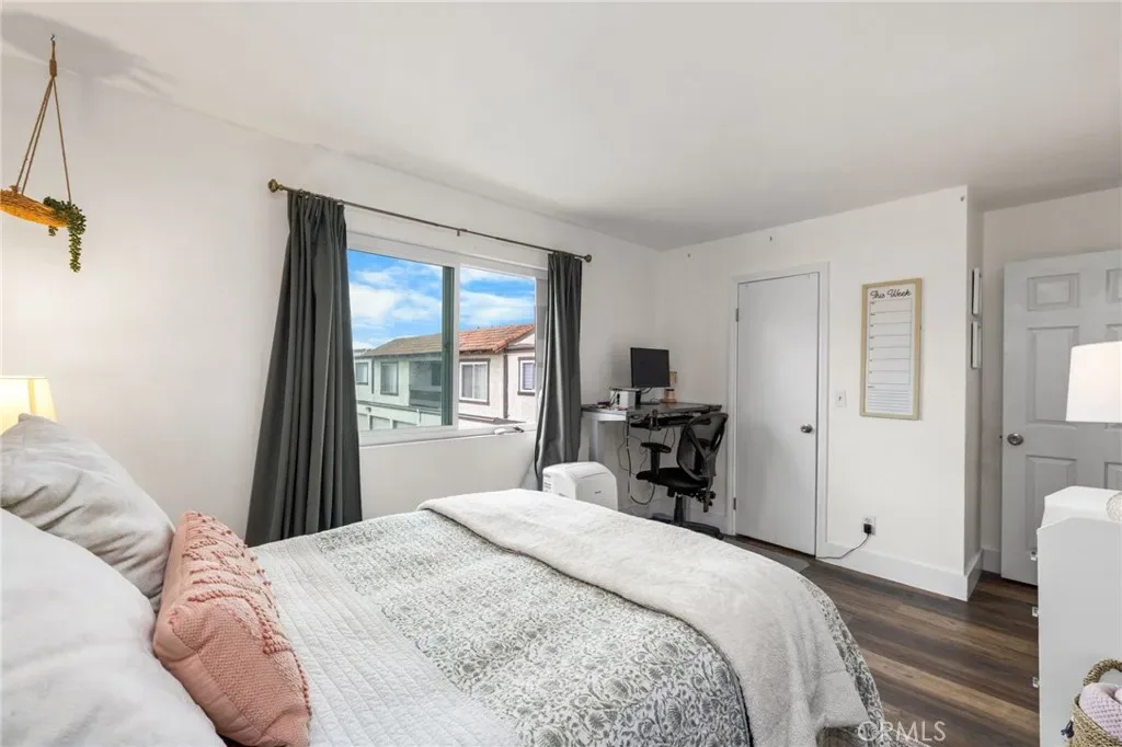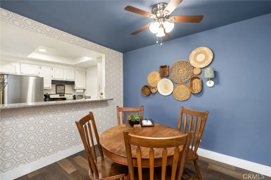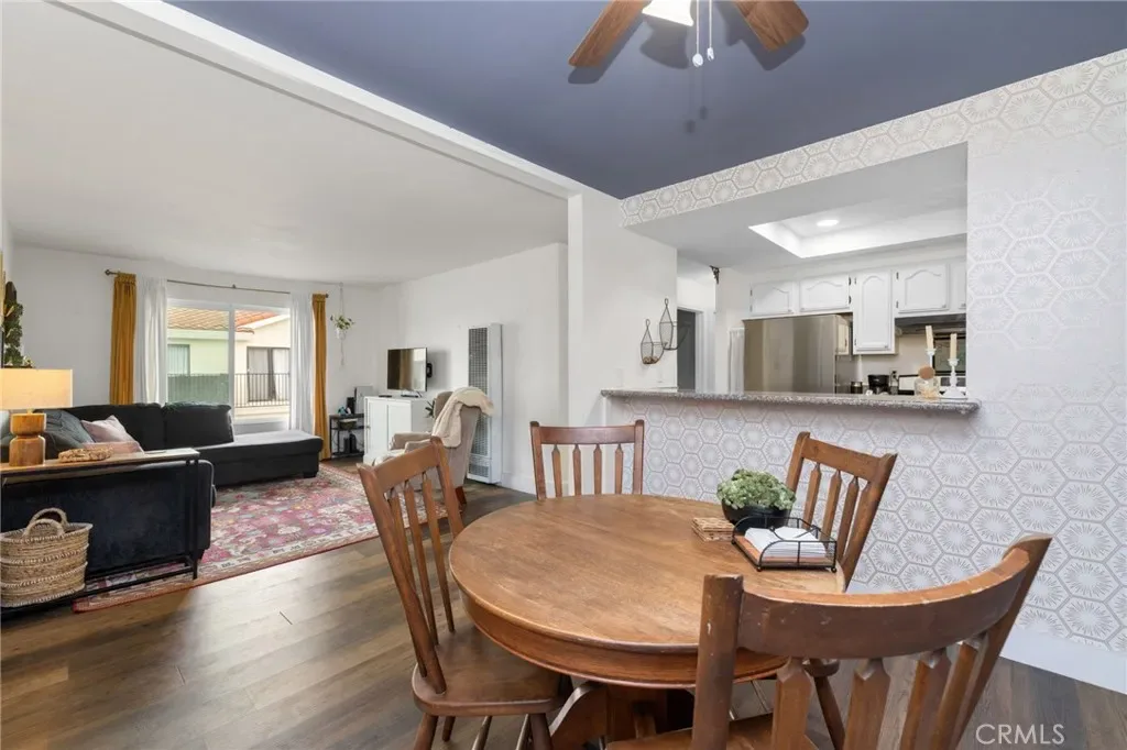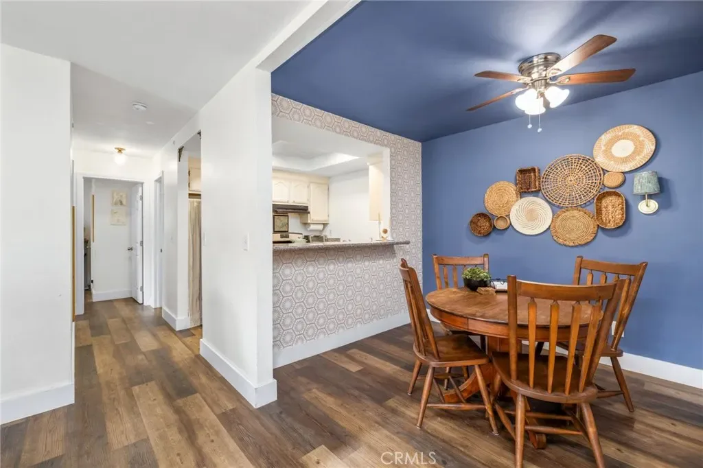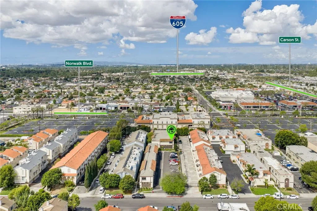 Welcome home to this charming 2-bedroom, 1-bath upper-level condo located in a gated community in Hawaiian Gardens. This well-maintained home features an open-concept layout that seamlessly connects the living, dining, and kitchen areas – perfect for both everyday living and entertaining. Newer laminate flooring flows throughout the unit, adding a clean, modern touch. Down the hall, you’ll find two comfortable bedrooms and a beautifully maintained bathroom. The spacious primary bedroom offers a walk-in closet, providing ample storage and peaceful retreat at the end of the day. The unit includes both a private garage and an additional parking space for added convenience. The community has recently brought on a new HOA management company with dues that include water, trash and exterior maintenance – making for easy, low maintenance living. Ideally located near restaurants, shopping and the 605 freeway, this home offers comfort, convenience and great value.