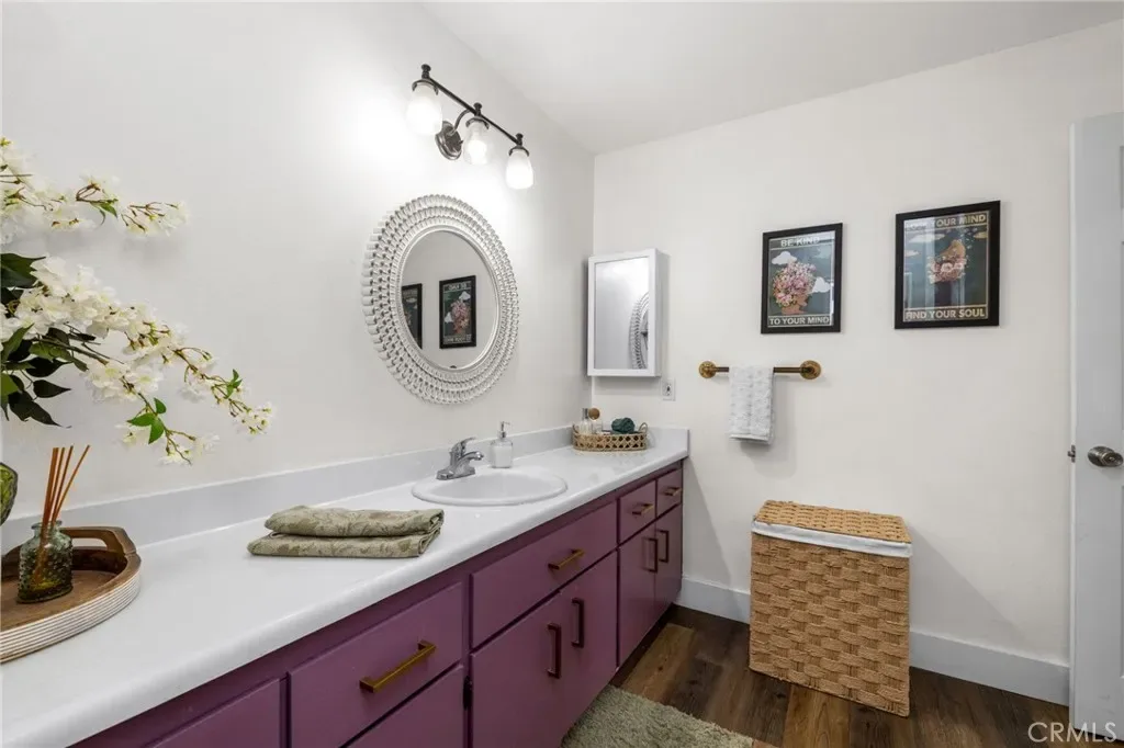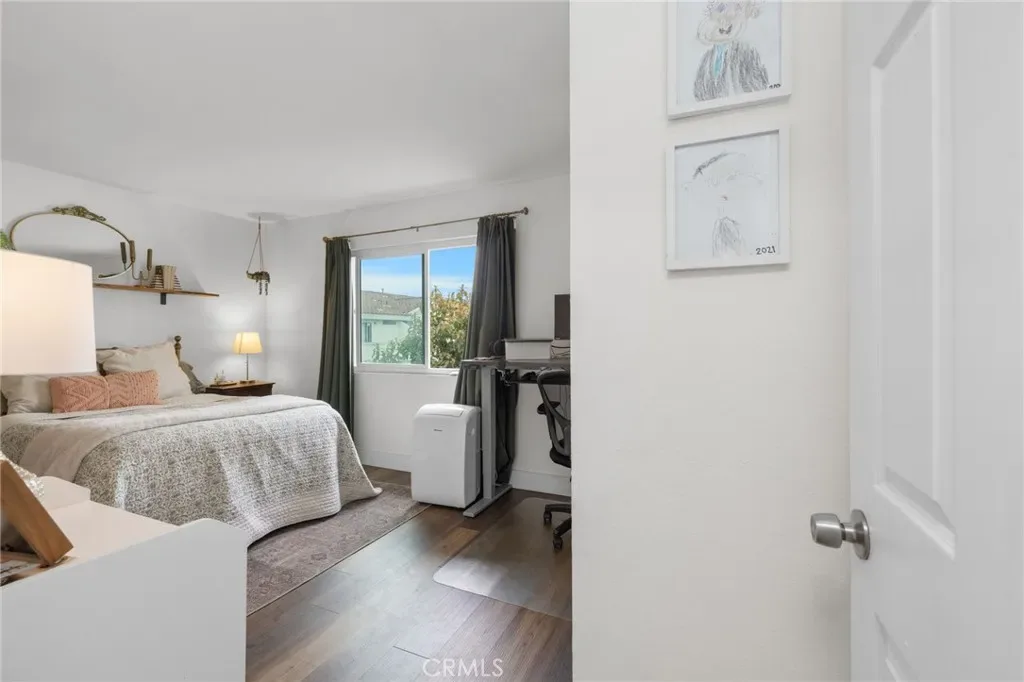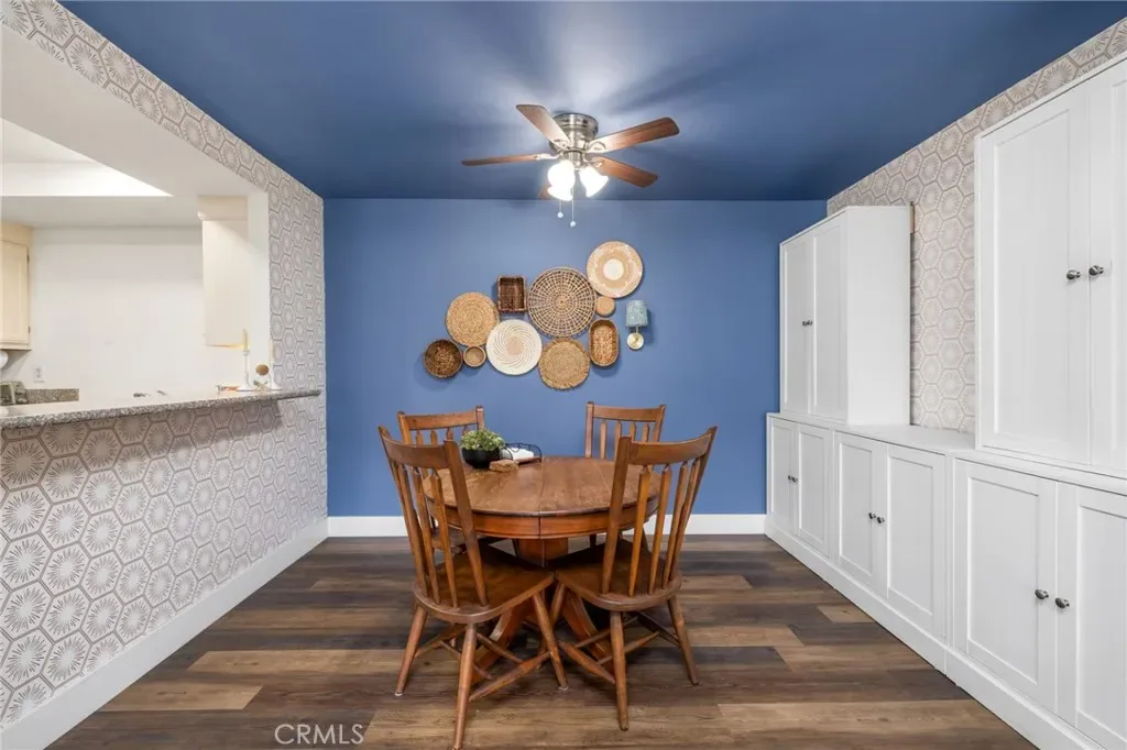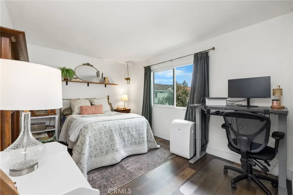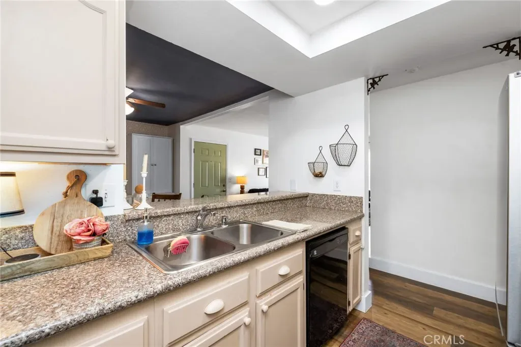 Welcome home to this charming 2-bedroom, 1-bath upper-level condo located in a gated community in Hawaiian Gardens. This well-maintained home features an open-concept layout that seamlessly connects the living, dining, and kitchen areas – perfect for both everyday living and entertaining. Newer laminate flooring flows throughout the unit, adding a clean, modern touch. Down the hall, you’ll find two comfortable bedrooms and a beautifully maintained bathroom. The spacious primary bedroom offers a walk-in closet, providing ample storage and peaceful retreat at the end of the day. The unit includes both a private garage and an additional parking space for added convenience. The community has recently brought on a new HOA management company with dues that include water, trash and exterior maintenance – making for easy, low maintenance living. Ideally located near restaurants, shopping and the 605 freeway, this home offers comfort, convenience and great value.