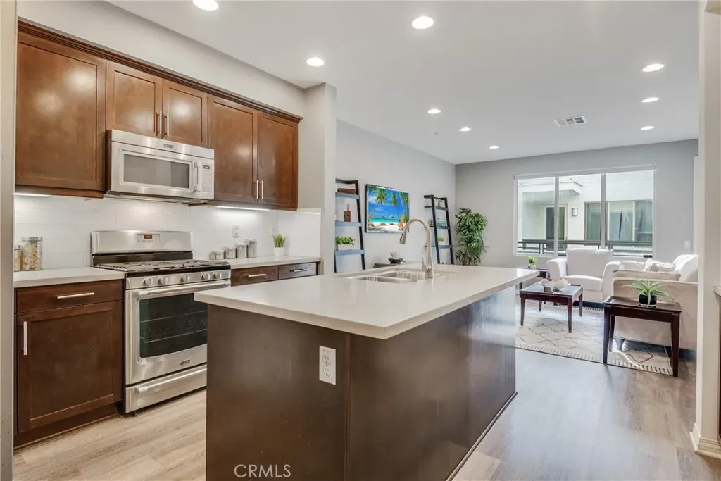 Welcome to resort-style living in the gated community of Three Sixty. This is unlike any community in the South Bay with a friendly community vibe, incredible amenities, great schools and ideally located for anyone with a commute. 12921 Mission #102 is a turn-key retreat with an adaptive floorplan and a quiet location….an even features a 3 car garage! This beautiful home offers 2 spacious and bright suites plus 2 bonus room which can be utilized to fit your lifestyle and needs. Enter through the beautiful foyer with dramatic curved walls and staircase. The spacious front den offers oversized windows and can be used for anything from a formal dining area to an office/den to an additional guest space, and features wide-plank flooring, new paint, and dramatic lighting. Just beyond, you enter the open kitchen with rich, dark cabinetry, stainless steel appliances, quartz counters, pantry, and the spacious kitchen island with countertop seating that is sure to be the gathering spot. This fantastic space opens to the south facing living room bringing in great light through picture windows. This beautiful space features high ceilings, recessed lighting, picture windows, wide-plank flooring, custom paint, and direct access to the patio to easily merge indoor and outdoor spaces. Head upstairs to two private suites, along with an additional office/den/family room, and the conveniently located laundry. The south facing suite features beautiful overhead lighting, new paint, and new carpet. This gorgeous space features an oversized window to let in the light and offers a walk-in closet and a luxurious bath with dark cabinetry, quartz counters, a tub/shower, and a separate water closet. The primary suite is spacious and bright, featuring a small balcony, new carpet, new lighting and ceiling fan, new paint, dual walk-in closets, and a beautiful primary bathroom. Additional highlights include central heat and AC, south-facing deck, and so much more. Three Sixty offers a true community feel in which it’s hard not to say hi and wave to the neighbors. Amenities are simply incredible highlighted by the incredible pool deck of the “center”, with multiple pools, jacuzzi, luxury cabanas, dramatic firepit, outdoor seating, BBQ areas, numerous luxury lounges, 2 dog parks, playground, grassy parks, basketball and pickleball court, and the state of the art fitness center. The active and diverse residents give this a true neighborhood feel.