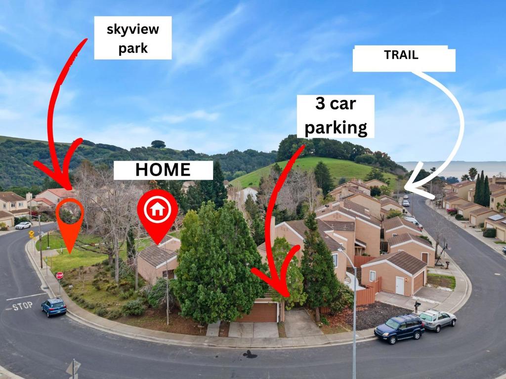 Have you seen a RARE 2-bedroom, 2-bath detached SINGLE FAMILY CORNER HOUSE with a 3 car parking that is situated next to the Skyview Park in the hills of Hayward? Why buy a condo with high hoa, when you can own a ONE STORY single-family house in one of the SAFEST PART of HAYWARD with NO neighbors to the right, top or below you . Welcome to 2757 Gamble Ct, where you truly feel like home, while being surrounded with nature, trails, park, and just minutes away from CSU East Bay, restaurants and Freeways. A fully MOVE IN READY residence spanning 1,352 sq ft, has a well-equipped kitchen featuring sleek quartz countertops, an electric oven range, refrigerator, and a new stainless steel wide sink. Additionally, this home has New floors, new paint , newly updated bathrooms and an unparalleled view of the park + A PRIVATE DIRECT ACCESS TO THE PARK from your backyard ! The high ceilings will give you plenty of natural light and air. You have to see it to believe it. A detached 2 car garage provides you added security and an additional carport gives you ample of parking for 3 cars ! Don’t miss your chance to own a RARE 2 BEDROOM 2 BATH SINGLE FAMILY HOME.! This is a not just a must see but it’s a must have !