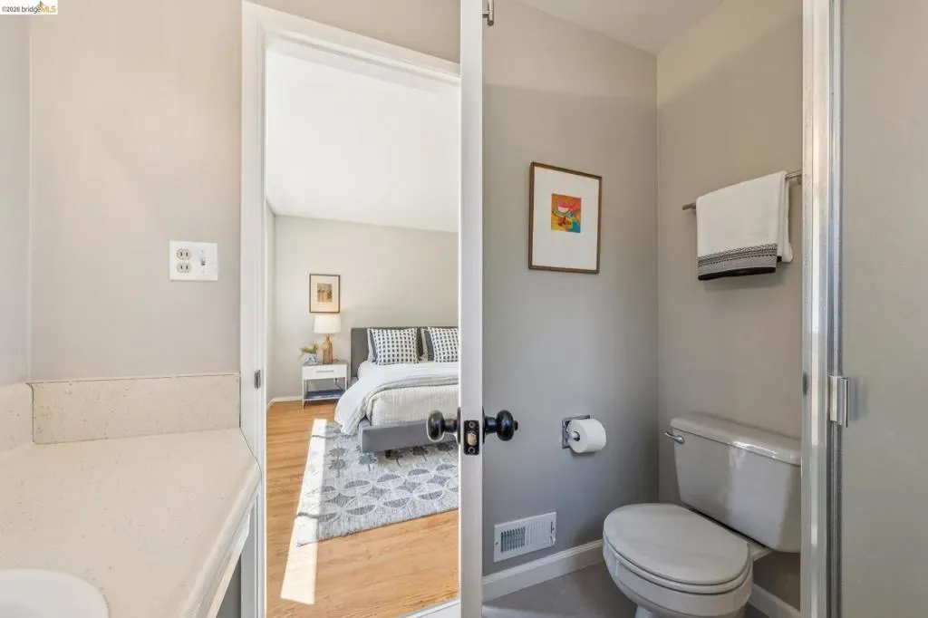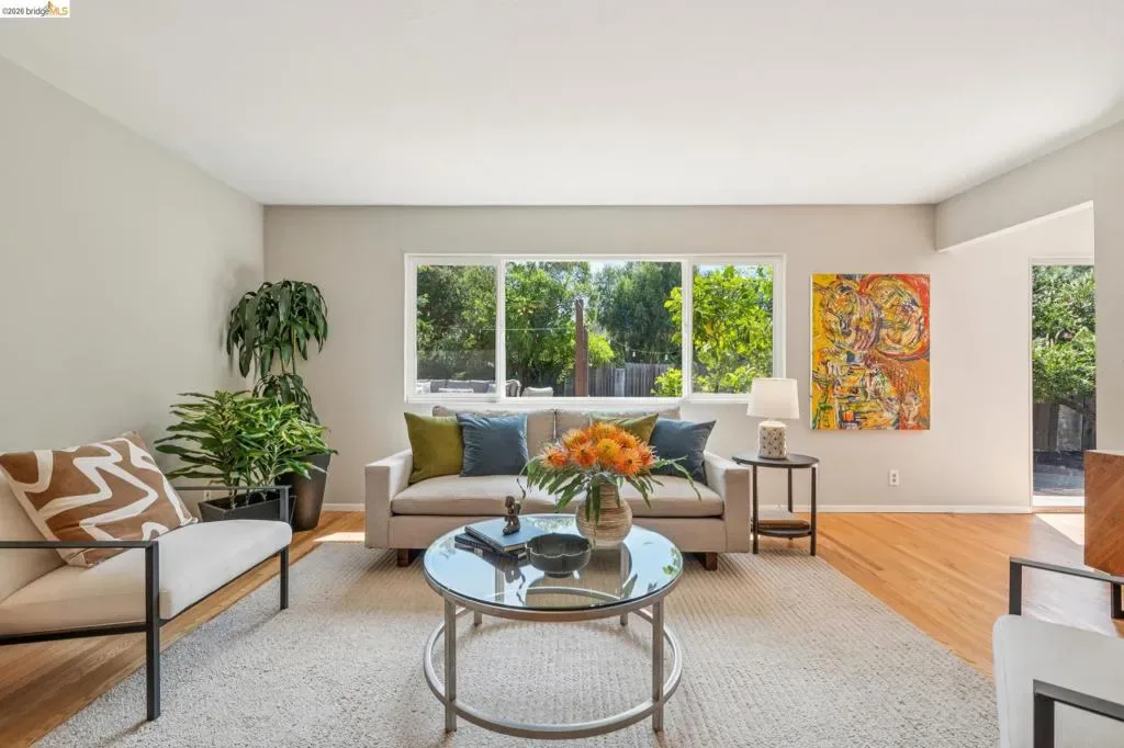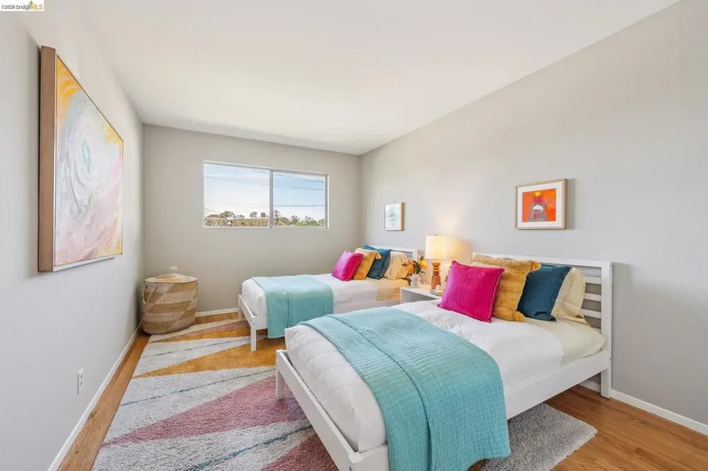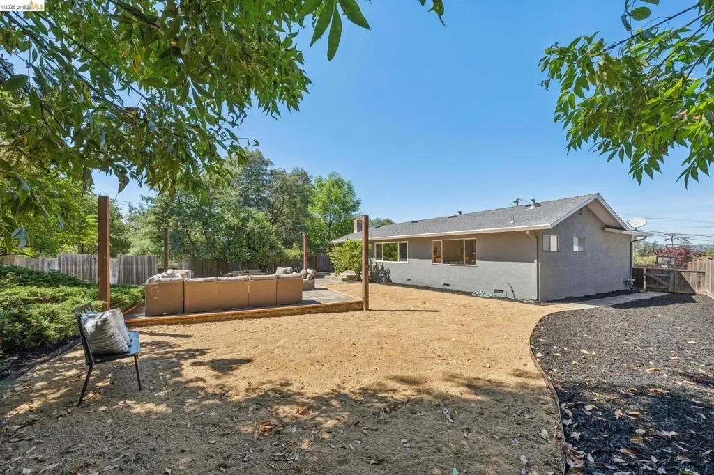 Ultra charming Mid-Century Rancher on expansive, over-sized lot (13,440 sq ft, nearly 1/3 acre!) Gleaming hardwood floors throughout, new paint inside and out, new lighting, new vinyl in the bathrooms, sun-drenched primary suite, great closet space, 2-car garage with interior access, 20′ x20′ party platform with party lights in backyard, fenced dog run, all on a quiet cul-de-sac with only 3 other homes! The Fairview neighborhood is incredibly well located just minutes from the 580 freeway, Downtown Hayward, and Castro Valley Marketplace, the hub of the area’s burgeoning culinary scene. Just blocks from Don Castro Regional Recreation Area with its hiking trails, picnic spots, & summertime swim lagoon! Come discover this hidden gem!