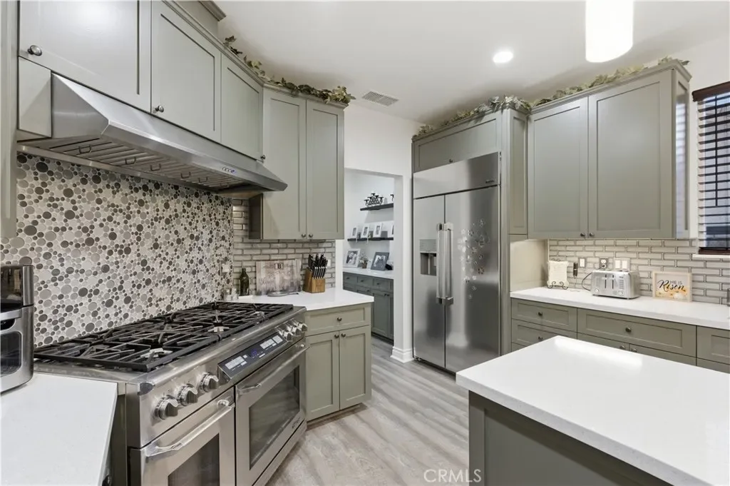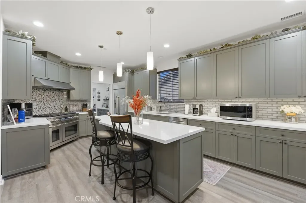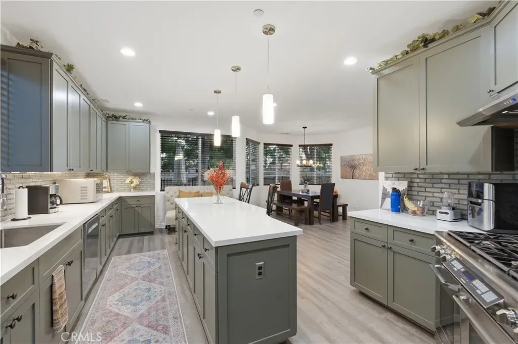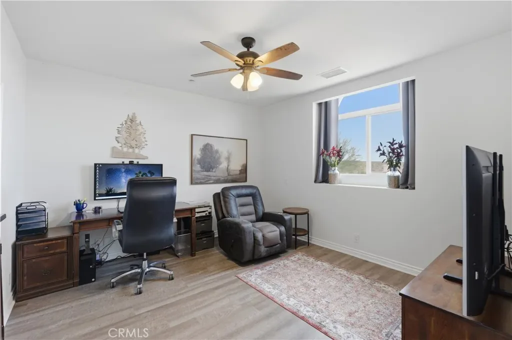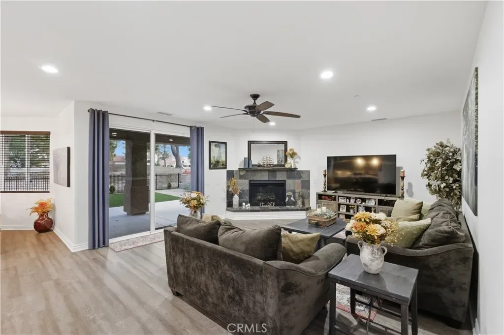 Experience a resort-style lifestyle in this stunning custom-built home, perfectly situated in the serene community of Silver Lakes in Helendale, CA. Spanning a spacious floor plan with four bedrooms and three full bathrooms, this residence blends modern sophistication with eco-friendly innovation. Interior Features: Step inside to find brand-new Luxury Vinyl Plank (LVP) flooring throughout. The kitchen is equipped for culinary excellence, featuring elegant quartz countertops, a large center island, and high-end stainless steel appliances, including a Dacor double-oven gas range and a premium built-in Dacor refrigerator. Abundant storage and counter space make this a standout feature of the home. Primary Suite & Versatility The expansive primary suite serves as a true sanctuary, complete with a private en-suite bathroom and a generous walk-in closet. The entry-level bedroom provides excellent flexibility for guests, a multi-generational setup, or a quiet home office. Sustainable Power & Efficiency. This home is equipped with a robust solar system paired with a Tesla Powerwall 3 battery for a full-home backup. The system is grandfathered into NEM 2.0 net metering for approximately 18 years, providing a significant advantage for managing utility costs. Outdoor Amenities: The backyard is designed for relaxation and gatherings, boasting views of the golf course, low-maintenance artificial turf for year-round greenery, and a natural gas BBQ hookup. Extensive parking is available for vehicles and recreational equipment. Silver Lakes Community Amenities Membership in the Silver Lakes HOA provides access to premier amenities, including:Golf: 27 holes of championship golf with three unique 9-hole tracks. Lakes: Two private lakes for boating, fishing, and kayaking.Clubhouse: Facilities include dining, a fitness center, a swimming pool, and tennis and pickleball courts.Additional Perks: An equestrian center with stables, RV storage, and community programs—all within a peaceful desert setting.