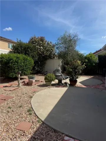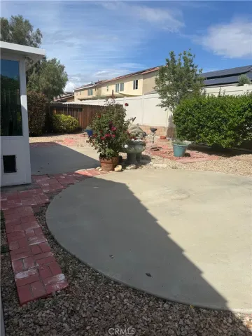 Beautiful single-story home on the west side of Hemet! 3 Bedroom 2 bathroom home. Updated flooring, granite countertops, and an upgraded tiled primary bathroom with walk in tiled shower. Open kitchen with island flows into the family room with fireplace and a large permitted sunroom adding additional square footage. Spacious primary suite with vaulted ceilings and slider to the backyard. Indoor laundry room. Large lot with storage shed and charming gated front courtyard. Low taxes, no HOA, and conveniently located near Domenigoni Pkwy and shopping.