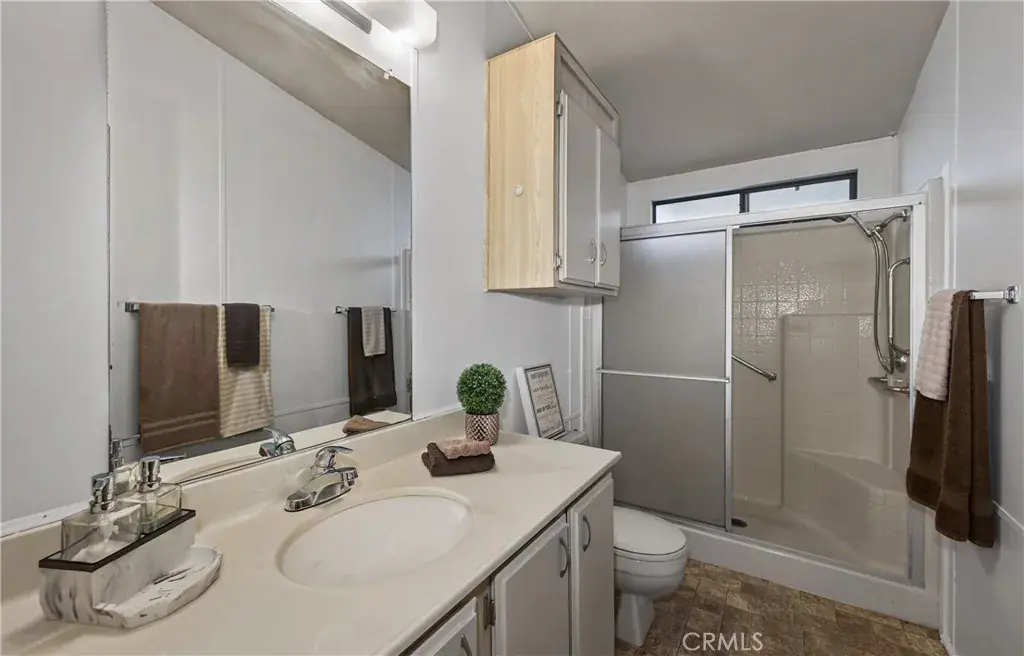 Check out this lovely doublewide home in the gated & desired 55+ age-restricted park of Foothills of Hemet which has new carpet and has been freshly painted. Spacious living & dining area that opens up to a large bonus room which can be used for just about anything your heart desires. Kitchen is light & bright with stainless steel appliances, new vinyl floorig & an abundance of cabinets. Lots of space in both bedrooms, with the primary bedroom having full length mirrored closet doors. Primary bathroom has the convenient full-size walk-in shower with seat & grab bar. Guest bathroom has the shower tub combo for those who like to sit & relax as they bathe. Inside laundry room has more storage than you may know what to do with. Screened in area at front porch for enjoying your morning or evening food & beverages. Backyard is fenced with a block wall & no one behind you where you can enjoy the views of our beautiful local mountains. Long carport with a good-sized shed at the end. The park is clean, quiet, gated and just plain awesome with amenities including 2 swimming pools, spa, pickleball courts, air-conditioned shuffle board court, exercise room, recreation hall w/kitchen, and rooms to enjoy billiards, cards, bingo, crafts & fun planned community dinners or activities. Ask about the park’s RV parking area. Commuter friendly, and close to shopping & restaurants.