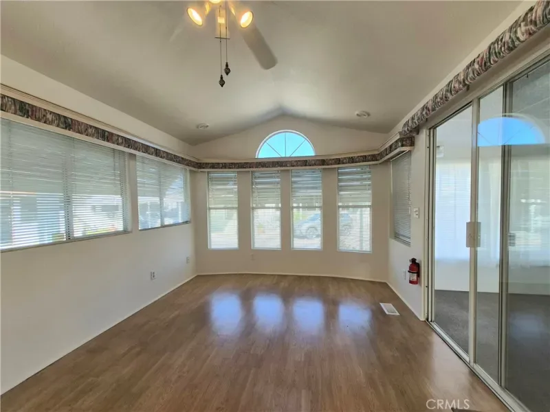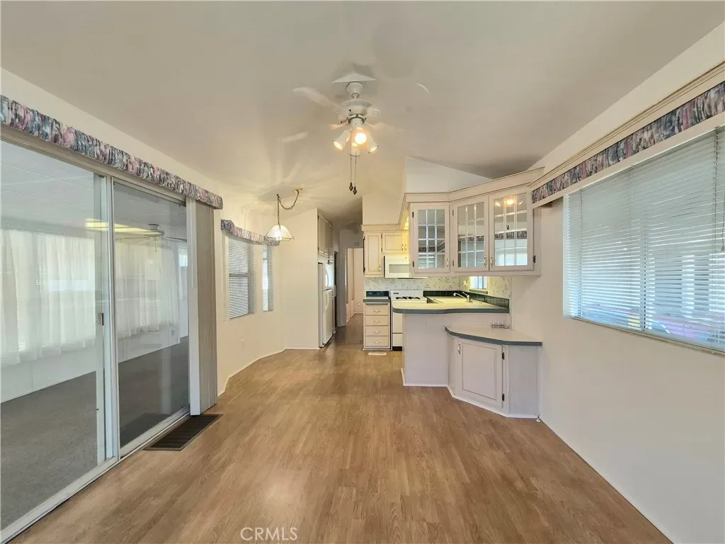 Welcome to Mountain Shadows! This well-maintained Park Model home offers comfort, functionality, and an inviting indoor-outdoor living. A full-length California Room creates the perfect space to relax or entertain, filled with natural light from multiple windows complete with sheer curtains, blinds, and exterior shade awnings. Freshly cleaned carpets in the California room, multiple ceiling fans, and an insulated acoustic drop ceiling make this room friendly and open to many options.
