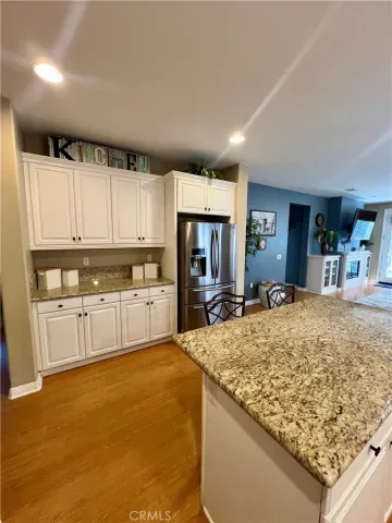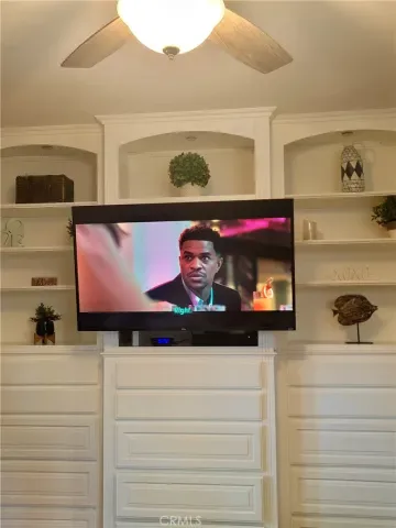 Step inside to discover an open, light-filled floor plan featuring a versatile office/flex space (legal third bedroom) that flows effortlessly into the formal dining area, highlighted by a stunning chandelier. The chef’s dream kitchen boasts gleaming white cabinetry, recessed lighting, granite countertops, and stainless steel appliances, including a refrigerator, dishwasher, microwave, and gas range/oven. The adjoining family room is perfect for entertaining, featuring a cozy gas fireplace flanked by elegant built-ins, and abundant natural light streaming through dual-paned windows and sliding glass doors that lead to two covered patios.