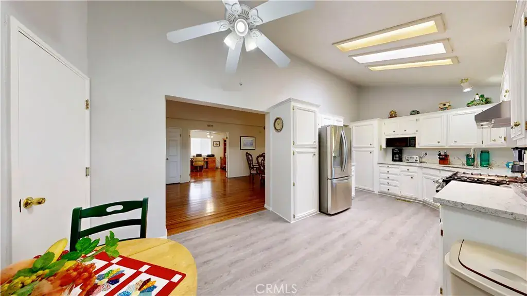Step inside to discover an open floor plan featuring a large living area with a cozy fireplace flowing into a spacious dining room, tile and bamboo flooring throughout. The recently refurbished, light-filled kitchen has new quartz countertops, a breakfast nook, lots of cabinet space, new appliances including a French door refrigerator with filtered water, plus a filtered water system at the new sink.