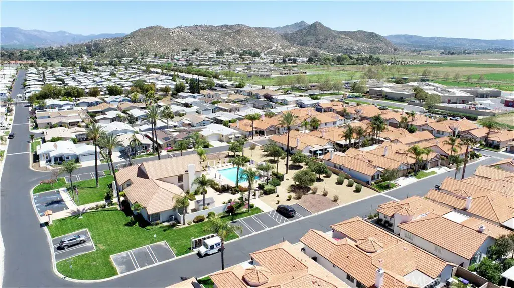 Welcome to Whispering Palms – a beautifully maintained 55+ gated community in the heart of Hemet. This spacious 2-bedroom, 2-bathroom manufactured home with bonus den/office sits on a permanent foundation on its own lot (you own the land and do not pay space rent), offering 1,744 sq ft of comfortable living space designed with functionality and ease in mind. The HOA dues cover water, trash and sewer, plus a well-maintained clubhouse, pool and community.