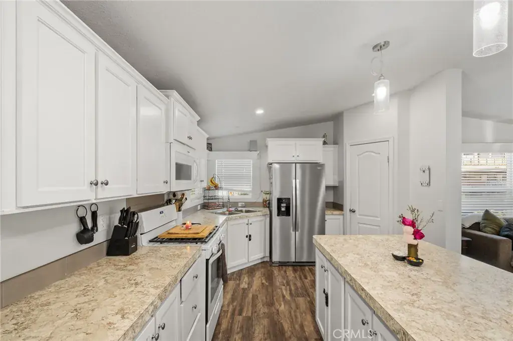 Welcome to Saddleback Mobile Home Estates, a gated all-age community in Hemet. This 2022-built manufactured home offers 3 bedrooms, 2 bathrooms, and 1,056 sq ft with a bright open floor plan connecting the living, dining, and kitchen areas. The primary bedroom includes a private en-suite bath, and two additional bedrooms provide space for guests, family, or a home office. Newer construction offers energy efficiency and low-maintenance living. Community amenities include a gated entrance, pool and spa, clubhouse, playground, basketball court, billiards room, library, BBQ and outdoor dining areas, plus RV and boat storage. Pet-friendly community. Conveniently located near schools, shopping, dining, and quick access to Domenigoni Pkwy.