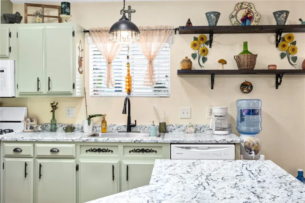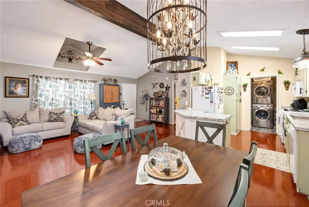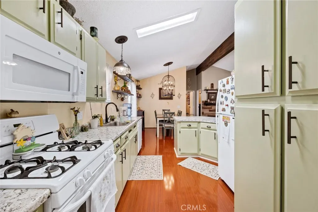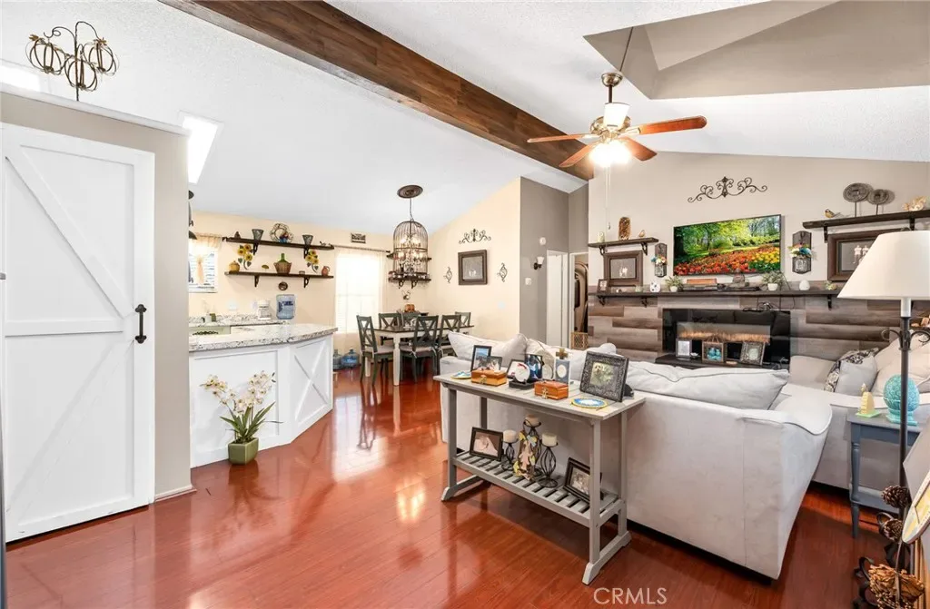 Adorable and clean 1991 mobile home in an all-age gated community park with fantastic views! This home features 3 bedrooms, 2 baths, granite-looking countertops, a kitchen island, a painted interior/exterior, an electric fireplace, ceiling fans, a gas stove, a microwave, dishwasher, washer, and dryer. The master suite has a walk-in closet, updated shower, and a barn door for privacy. The guest bathroom has been updated to include a shower, vanity, and lighting. In addition, this corner lot has panoramic views of the surrounding valley and a fantastic covered patio for outdoor entertaining. The large corner lot is located at the top of the hill and even includes a backyard, shed, and parking for 3 vehicles. Location is close to Domenigoni Parkway, schools, shopping, and easy access to Temecula, Menifee, and the freeway. The amenities include a pool, spa, playground, basketball court, clubhouse, dog run, and BBQ area.