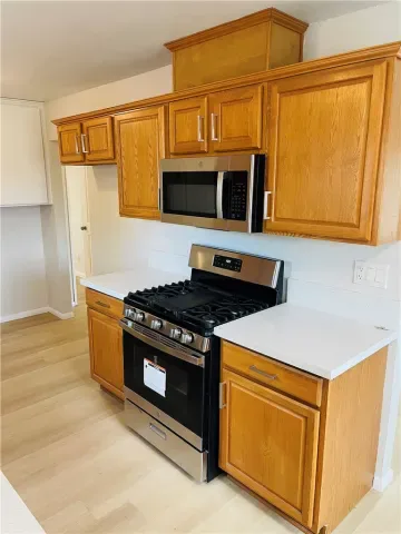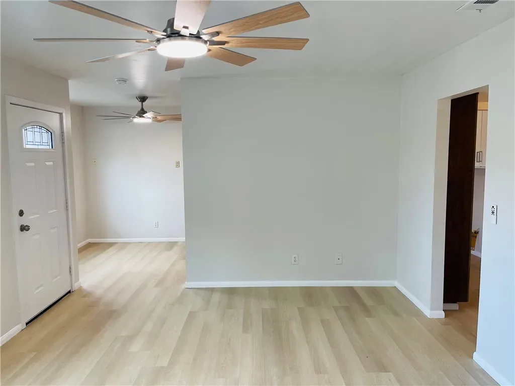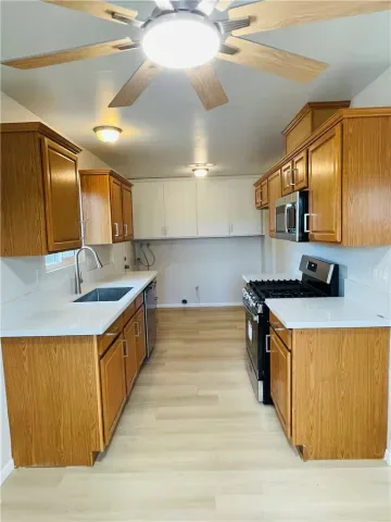 BEAUTIFUL 55+ community duplex home with 2 bedrooms, 1 bath, 1 car garage, living room, separate dining area in kitchen, kitchen with upgraded quartz counter tops, newer flooring throughout with fresh paint and newer HVAC. The back yard is low maintenance and has a patio and patio cover. A Must See!