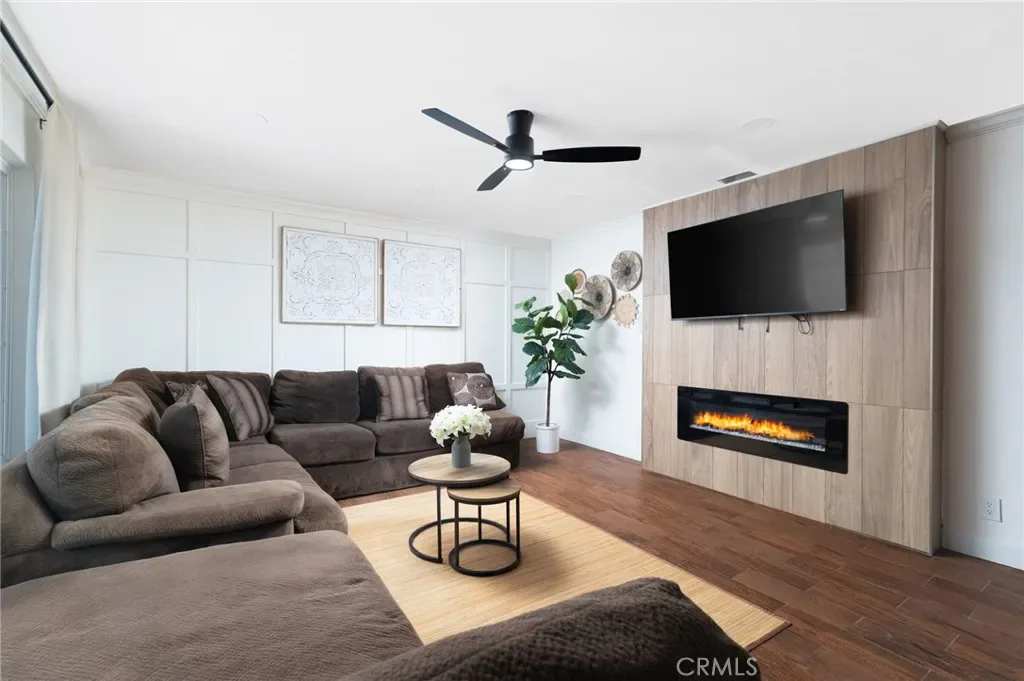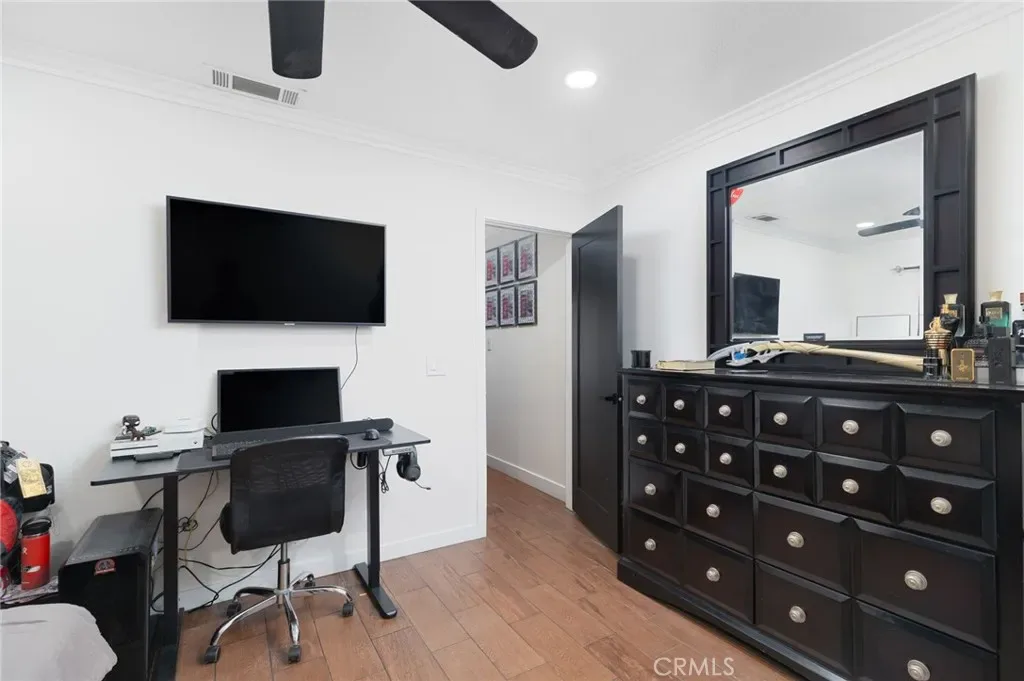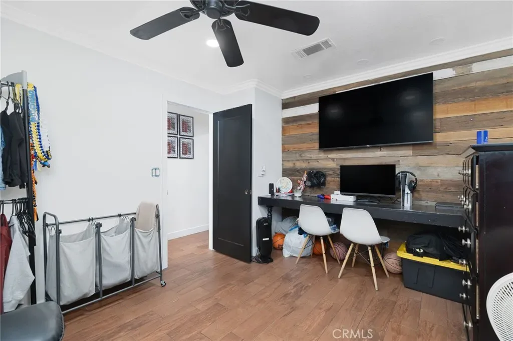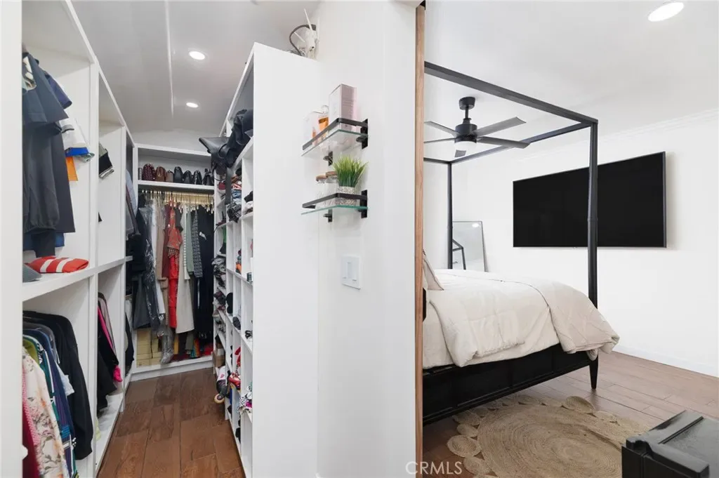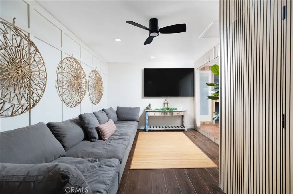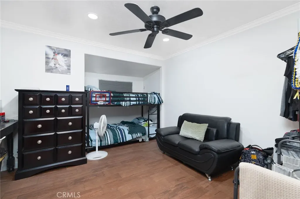 The former garage has been professionally converted into additional living space, offering a separate living room area and a large bedroom with two spacious closets and upgraded lighting. This flexible layout is ideal for multi-generational living, guests, or additional living space.