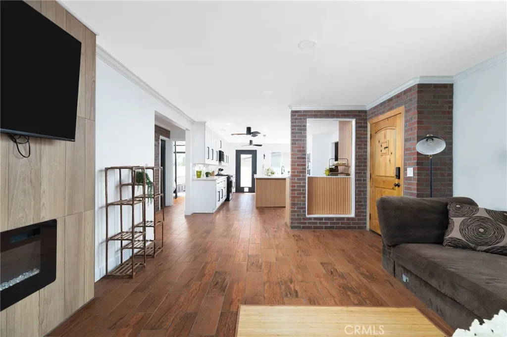 Fully renovated in 2026, this modern 4-bedroom, 4-bathroom home blends contemporary design with warm architectural character. The bright interior features crisp white tones, striking REAL brick accent walls, and multiple sliding doors that create excellent natural light and seamless indoor-outdoor flow. A brand-new roof will be installed prior to the close of escrow.