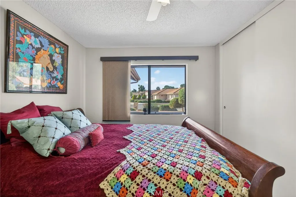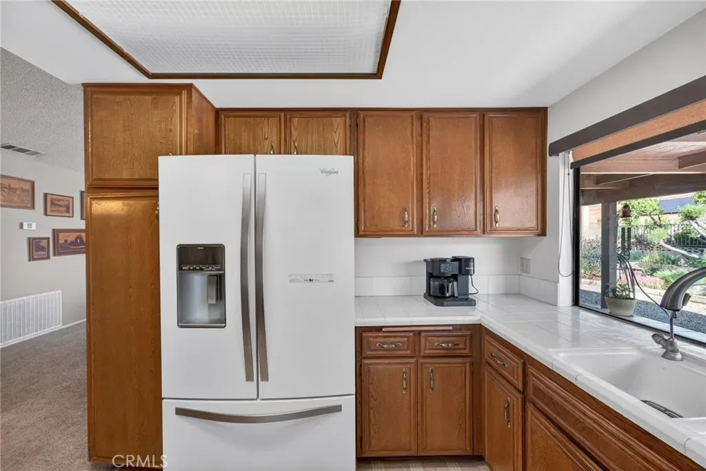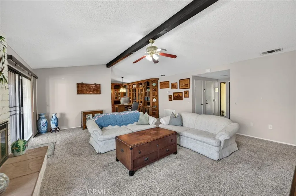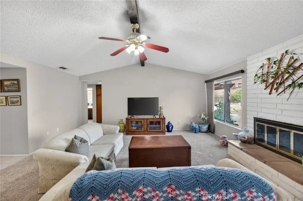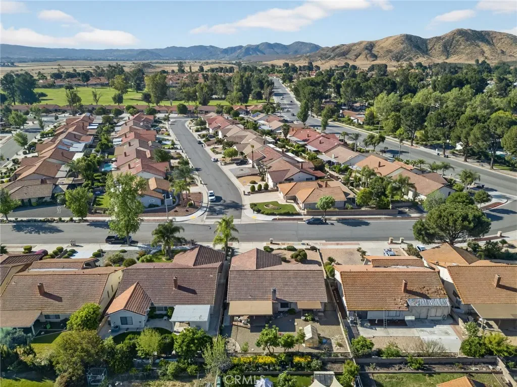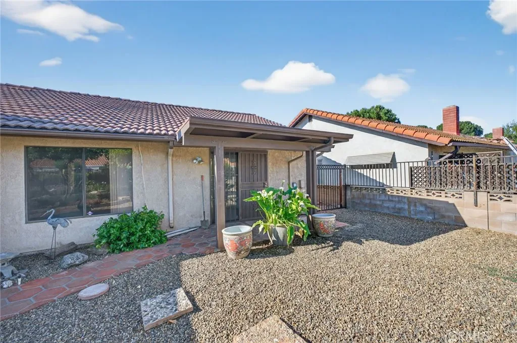 Welcome to this charming single-story home located in the desirable 55+ community of Seven Hills in Hemet. Offering 2 bedrooms, 2 bathrooms, and 1,313 sq ft of living space, this home sits on a spacious 6,970 sq ft lot designed for easy, low-maintenance living. Step inside to a bright and inviting living room featuring a cozy fireplace and hearth, perfect for relaxing or entertaining. The kitchen offers tile countertops and an oversized window that brings in natural light while providing a peaceful view of the backyard. The primary suite is a comfortable retreat with direct backyard access, a walk-in closet, and an ensuite bathroom with a shower. A secondary bedroom and full bathroom provide flexibility for guests, hobbies, or a home office. Enjoy the outdoors under the covered patio, surrounded by low-maintenance desert landscaping and a rare variety of fruit trees including apple, plum, donut peach, lime, grapefruit, orange, tangerine, and lemon. It’s a perfect space to unwind or enjoy fresh fruit right from your own yard. The backyard is enclosed with wrought iron fencing and includes added security gates, offering a defined outdoor space to relax and enjoy your surroundings. This home is designed with comfort in mind, featuring cool energy tiles along with additional vents and enhanced ventilation to help maintain a pleasant indoor climate year-round. Seven Hills offers residents the opportunity to enjoy a variety of amenities such as a golf course, pool, spa, and fitness center, supporting an active and social lifestyle. Conveniently located near shopping, dining, and everyday essentials, this home offers comfort, convenience, and a welcoming community atmosphere in the heart of Hemet.