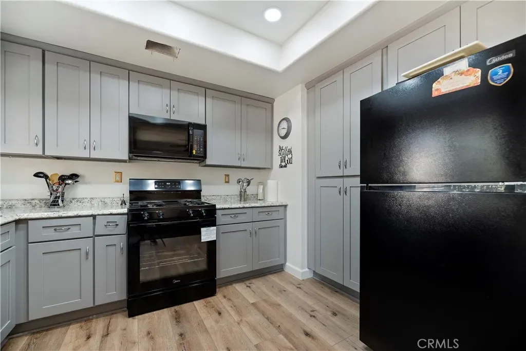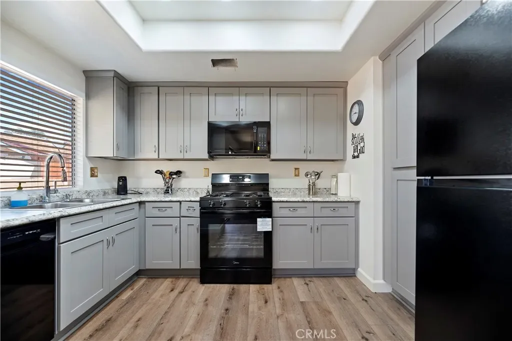Beautifully updated 2-bedroom, 2-bath home with a versatile office/den option, located in a desirable area of Hemet. This home features a newer remodeled kitchen with modern finishes, along with tastefully updated bathrooms. Enjoy laminate flooring throughout, offering both style and easy maintenance. The inviting living room includes a cozy fireplace, perfect for relaxing evenings. Dual-pane vinyl windows provide energy efficiency and comfort year-round. Solar helps enhance energy efficiency and reduce utility costs. Residents also have access to a community pool, adding to the appeal of this well-maintained property. Located in a 55+ Community.
