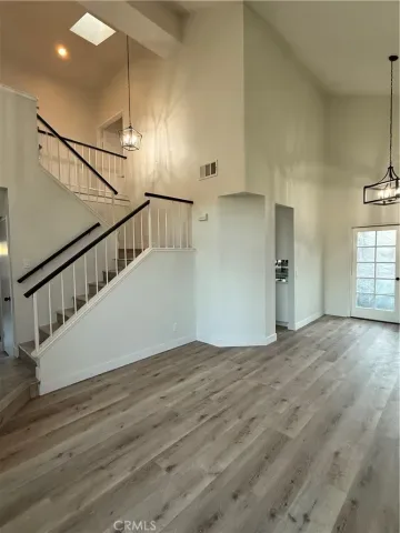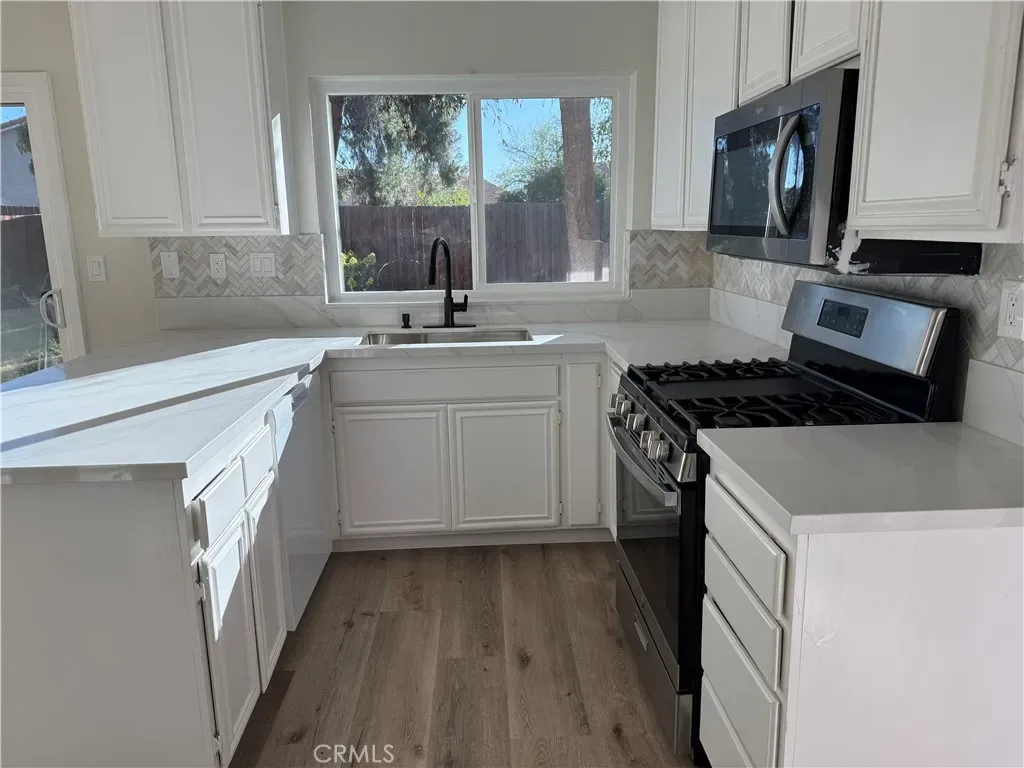 Welcome to this beautifully updated two-story home nestled on a quiet cul-de-sac in Hemet. Sitting on an expansive 8,200 sq ft lot, this property offers both space and comfort, along with stunning mountain views that create a peaceful backdrop to everyday living. Step inside to find a bright, open layout featuring tall ceilings in the living room, fresh interior paint, and brand-new laminate flooring throughout. The heart of the home is the upgraded kitchen, complete with new quartz countertops, modern finishes, and plenty of room for cooking and gathering. The inviting family room includes a cozy fireplace, perfect for relaxing evenings. With 4 bedrooms and 3 full baths, this home offers flexibility for families of all sizes. The downstairs bedroom and full bath make an ideal space for guests, older family members, or a private home office. Outside, the large backyard provides endless possibilities—gardening, entertaining, or simply enjoying the open space. A 2-car garage adds convenience and storage. Located near stores, schools, and everyday amenities, this home blends comfort, style, and practicality in one perfect package.