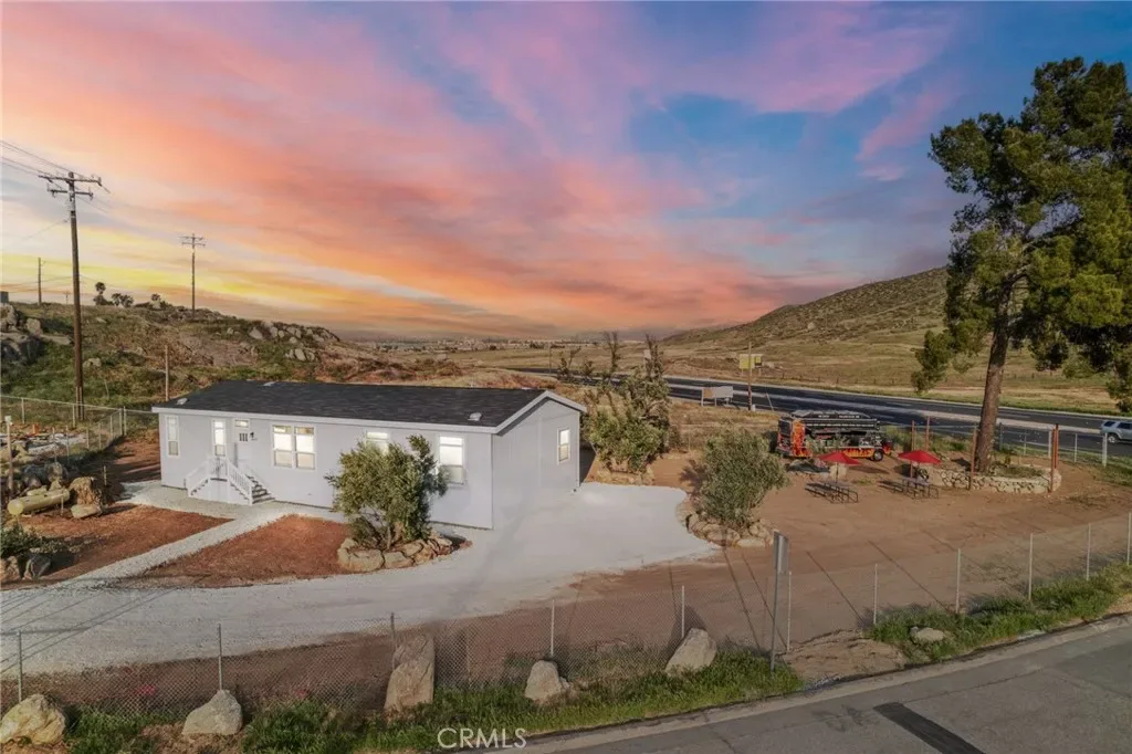 SELLER WILLING TO DO OWNER FINANCING WITH 50K DOWN. Both Residential and Commercial allowed! This New Construction Manufactured Home corners a residential Neigborhood with Highway 74 access for business uses. Large 4 bed 2 bath new home with 9 foot ceilings has a 433 foundation and qualifies as a single family home for lending needs, FHA, VA etc. In addition to the 26220 Calvert Avenue, Hemet, CA 92545 street number assigned for the residence, the parcel still has the 33964 State Highway 74, Hemet, CA 92545 old address as shown in Google. Commercial activities approved by the County of Riverside can be conducted on this property, It is possible to establish and run a small family business or restaurant with a permit issued for the existing house kitchen to be used. Alternatively, for extra monthly income, the Southern portion of the property can be rented to a Food Truck Operator, or Billboard, or to someone else that wants to conduct any number of commercial activity. This lot features enough space to park large equipment, trailers, many tables, etc for large events. For a list of what is allowed and clarification on how to use kitchen for commercial uses, please consult the County of Riverside Planning Department and County of Riverside Health Department. All buyers to do their own Due Diligence. New home comes with Factory Warranty, this is a must see location so schedule your appointment today. Seller open to carry term!