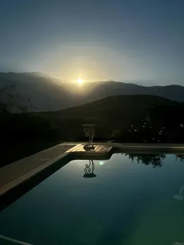 21 acres behind the house also for sale. Offered for the first time ever, this one-of-a-kind custom home captures sweeping, unobstructed mountain and valley views from its privately situated hillside setting. The approach alone is unforgettable—you drive through beautiful orange groves, a true nod to classic California living, before arriving at this serene and private retreat. Enjoy breathtaking panoramas of the San Jacinto Mountains, San Bernardino Mountains, and the San Gabriel and Santa Susana ranges—along with rolling hills, orchards, and the natural beauty of the valley floor below. The orientation of the home provides spectacular sunrises and glowing sunsets, creating an ever-changing landscape of color and light. Lovingly cared for by its original owner, the home has been meticulously maintained and thoughtfully designed with both comfort and functionality in mind. Abundant storage, new carpet, and a beautifully flowing layout make it instantly inviting. At the center of the home, a dramatic atrium floods the interior with natural light and creates a seamless connection between the living spaces. A striking formal living room showcases exposed wood-beam ceilings, a wall of arched windows, warm natural light, and a built-in wet bar with sink—perfect for entertaining. The formal dining room captures incredible mountain views, elevating every meal. The spacious kitchen features a large center island, warm wood cabinetry, generous storage, walk in pantry, desk area, abundant light, and a cheery breakfast nook ideal for morning coffee or casual meals while enjoying the views. The large family room, anchored by a cozy fireplace, offers an inviting space to unwind, while a charming library provides a quiet retreat for reading, work, or reflection. Each room feels distinct yet cohesive, balancing openness with intimacy. Step outside to your own private oasis. The sparkling pool and expansive patio overlook some of the most dramatic scenery in the region—mountains, orchards, and untouched natural landscapes that shift beautifully with the seasons. Beyond the patio, a spacious grassy area offers even more possibilities—perfect for yard games, outdoor gatherings, or as an ideal location to add an ADU. For garden lovers, the property is a dream, featuring dedicated potting areas and an abundant collection of mature fruit trees including Meyer lemon, Navel orange, Valencia orange, and Eureka lemon—bringing color, fragrance, and fresh citrus year-round. Adding even more versatility is a bonus space located downstairs in the garage area, complete with a large room with closet, a convenient half bath, an office or workspace, and additional storage rooms. Ideal for a home office, gym, hobby studio, or guest overflow, this flexible space expands how the home can live and function. With its custom design, thoughtful functionality, meticulous care, exceptional outdoor spaces, and extraordinary sweeping views—this cherished property presents a rare opportunity to own a truly special home making its market debut.