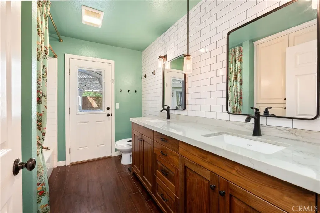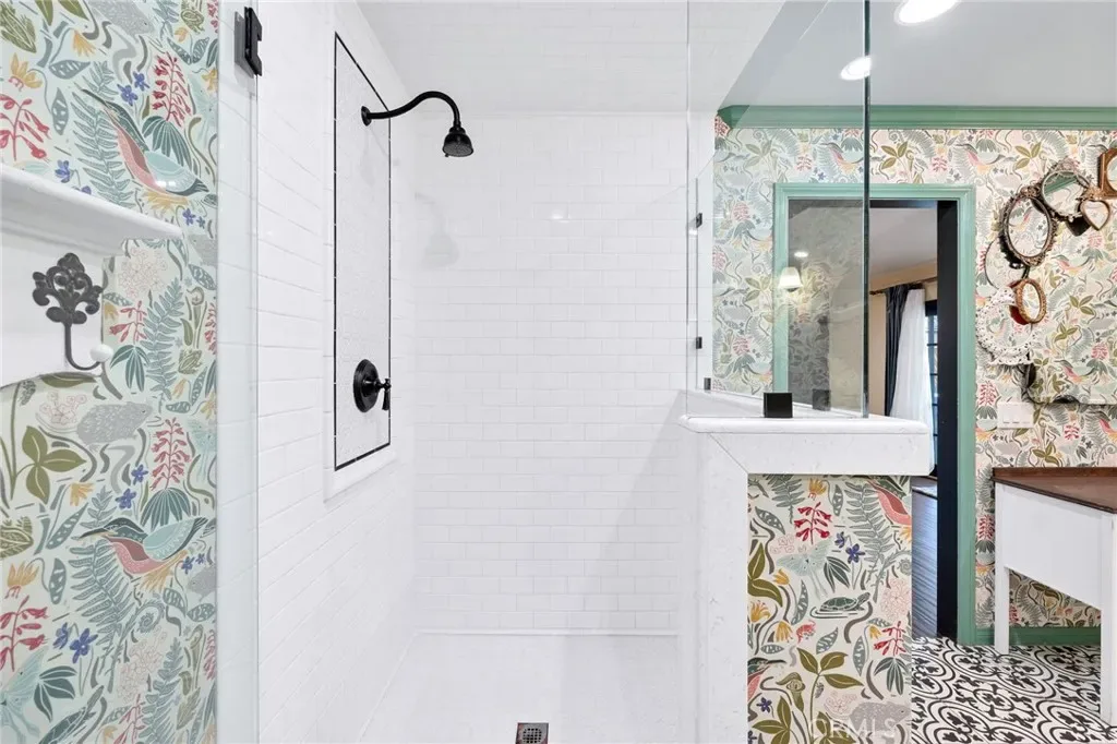 This home is thoughtfully designed with two primary suites, each boasting a private bathroom for added comfort and privacy. In addition, there are four more generously sized bedrooms and a full guest bathroom, offers direct access to the garden and jacuzzi area—making it exceptionally convenient for both residents and visitors. Upgrades throughout the home include tile flooring, newer cabinetry, updated windows, and ceiling fans, two HVAC and two water heaters. Abundant natural light fills the living areas and bedrooms, enhancing the warm and inviting atmosphere. The main primary bedroom features two walk-in closet with custom cabinetry in the beautiful bathroom tiled shower.