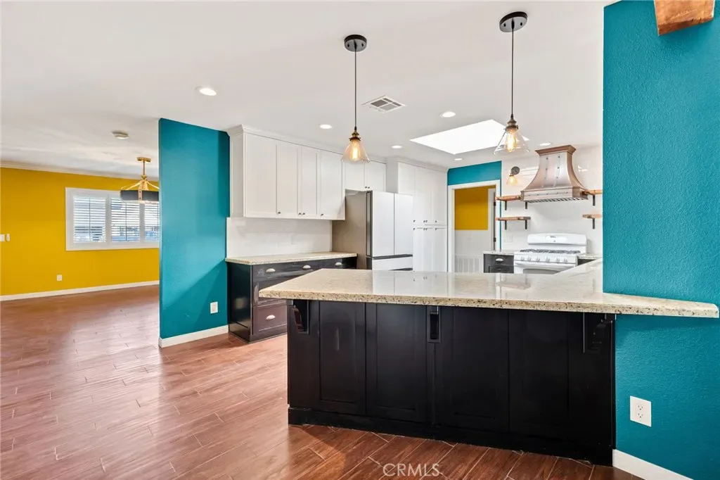 As you enter, you’ll find yourself welcomed by a spacious, distinct living room that flows effortlessly into a formal dining area. Kitchen beautifully updated and accentuated by an eye-catching exposed beam that adds character and style. The open-concept layout cleverly unites the kitchen, dining, and family rooms, providing a perfect setting for gatherings and celebrations.