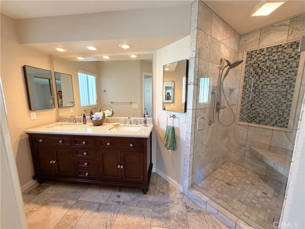 *** Price Improvement *** Real Gem in Seven Hills! Truly charming 55+ community. Tastefully upgraded home, open, vast floor plan, very unique and original, not your typical cookie cutter square rooms, yet easy to manage and furnish. Great volumes that make it feel larger than its 1,709 square feet. Completely remodeled kitchen with new cabinets, lots of oversized pan drawers, granite counter tops, pendant lighting over a peninsula that could host a few bar stools. Remodeled bathrooms with custom tile shower, dual sink vanity and granite countertops in the master, and a spa tub in the second bathroom. Custom fireplace and upgraded flooring. Perfect size yard, not too small not too big, easy to manage and nicely manicured. Recently repainted inside with some classic and some more modern color schemes. Lots of natural light and warm light fixtures for after sunset. Newer AC unit, about 2 years old. Aluminum patio cover for more durability. Extremely clean and well maintained. Only $43 a year of HOA dues per year. Truly a great property in a wonderful neighborhood! You should come take a look!