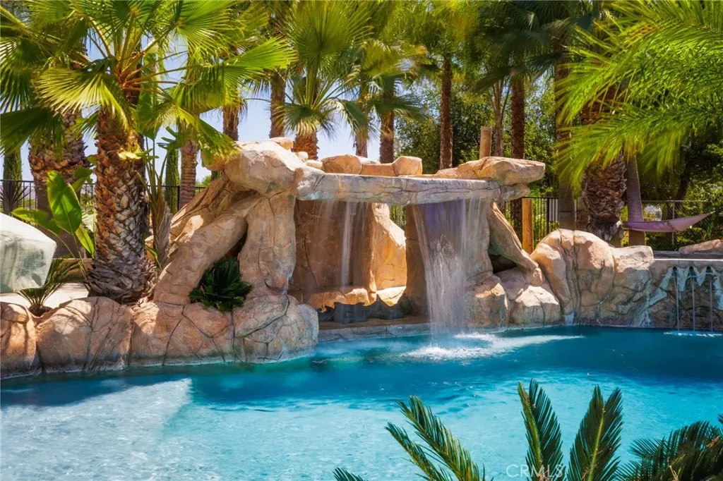 Step outside and the property really comes to life. At the center is a resort style pool complete with a built in swim up bar, spa, and fireplace, creating the perfect setting to relax, entertain, and enjoy year round. Just beyond, a peaceful koi pond with a bridge adds a sense of calm, while the private garden and over 30 fruit trees including avocado, citrus, pomegranate, figs, and more bring beauty and function together in a way that’s hard to find.