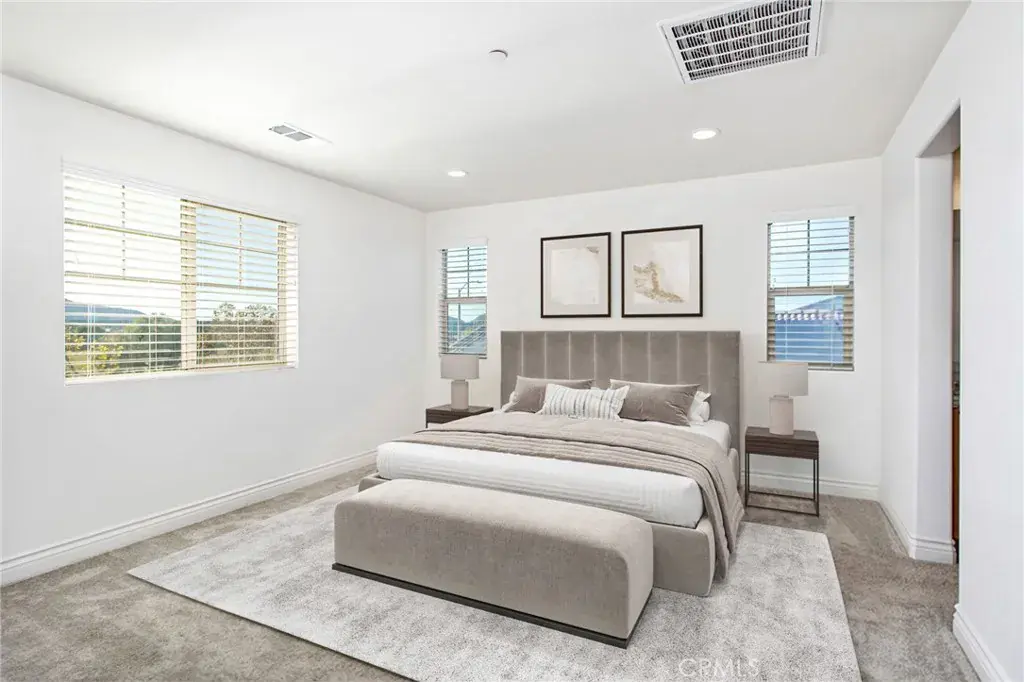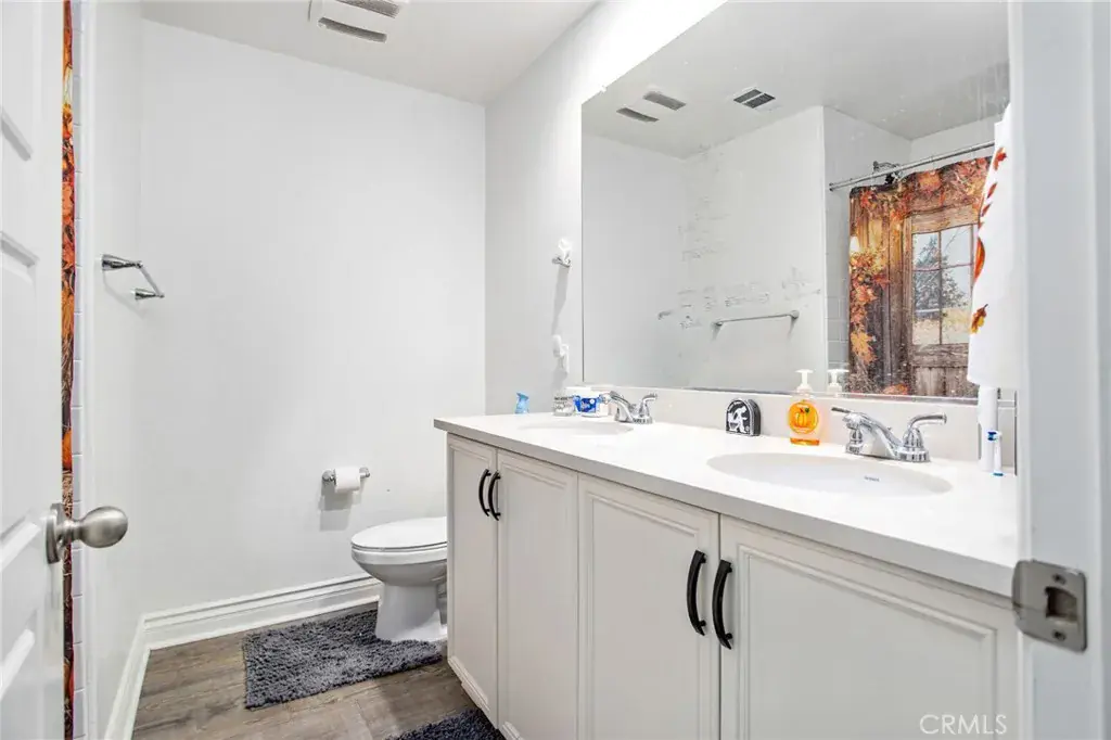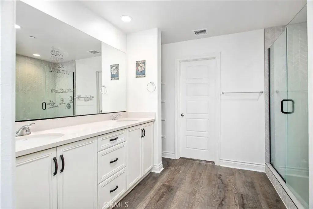 Upstairs, a spacious loft adds a second living space—ideal for movie nights, gaming, or a quiet place to unwind. The primary suite is generously sized and designed for relaxation, complete with an oversized walk-in closet and a bathroom featuring dual sinks and a large, beautifully tiled shower.