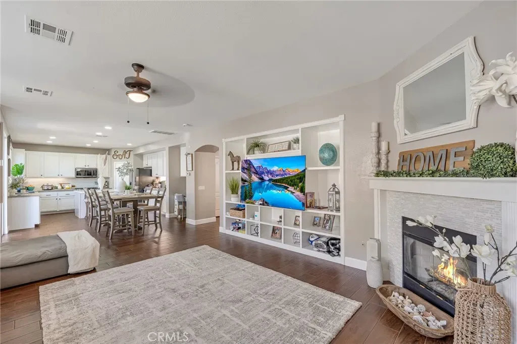 Welcome to the highly sought-after gated community of Willowalk! This stunning two-story home features 5 bedrooms and 3 bathrooms, offering comfort, functionality, and modern upgrades throughout. The first floor includes a bedroom and a full bathroom, along with recently upgraded flooring. The living room boasts a cozy fireplace and a built-in entertainment system, perfect for gatherings or quiet nights in.