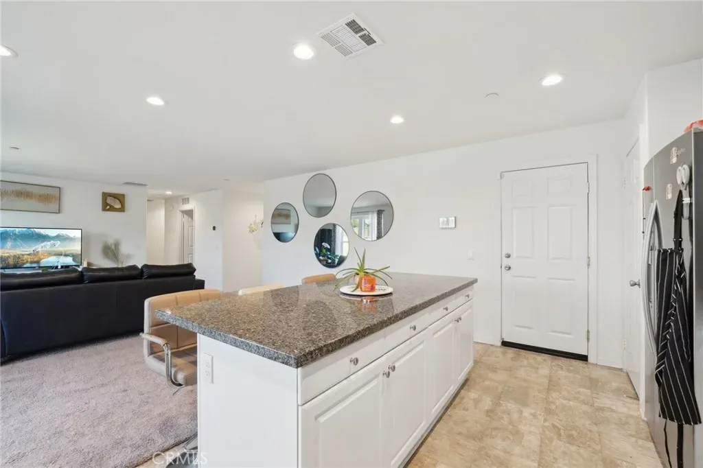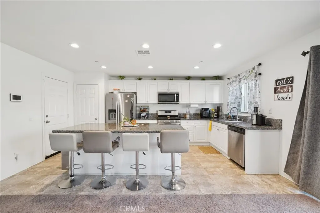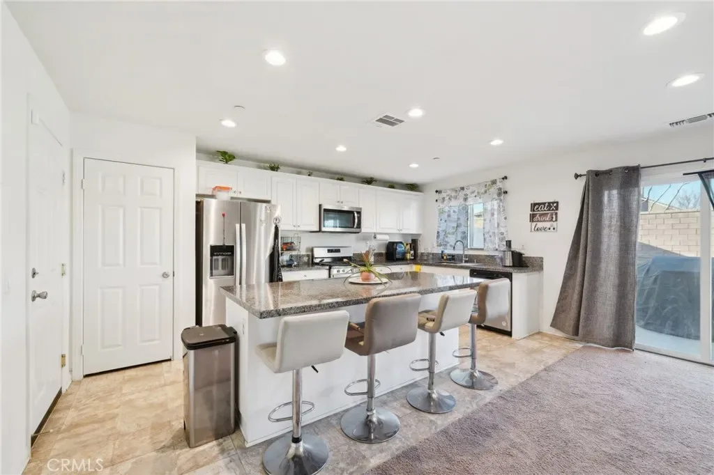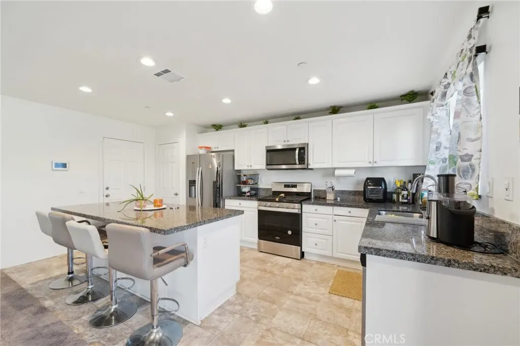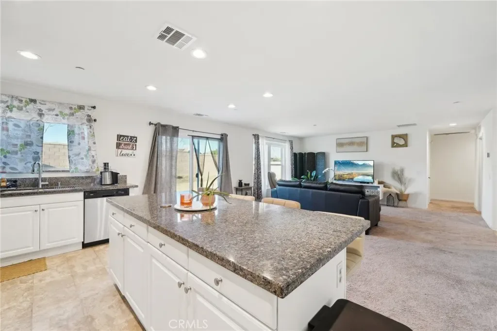 $10,000 FOREGIVABLE GRANT Experience the comfortable, laid-back living you want in this delightful 3-bedroom, 2-bath single-story home in a beautiful Hemet neighborhood! Past the foyer, continue to the open-concept main gathering areas filled with natural light, illuminating a crisp white palette, textured tiles, and plush carpeting underfoot. Glass sliders off the dining alcove beckon you to enjoy scenic alfresco celebrations. Steps away, the bright kitchen makes cooking a breeze with its stainless steel appliances, abundant cabinetry, and granite countertops that extend to the eat-at island.