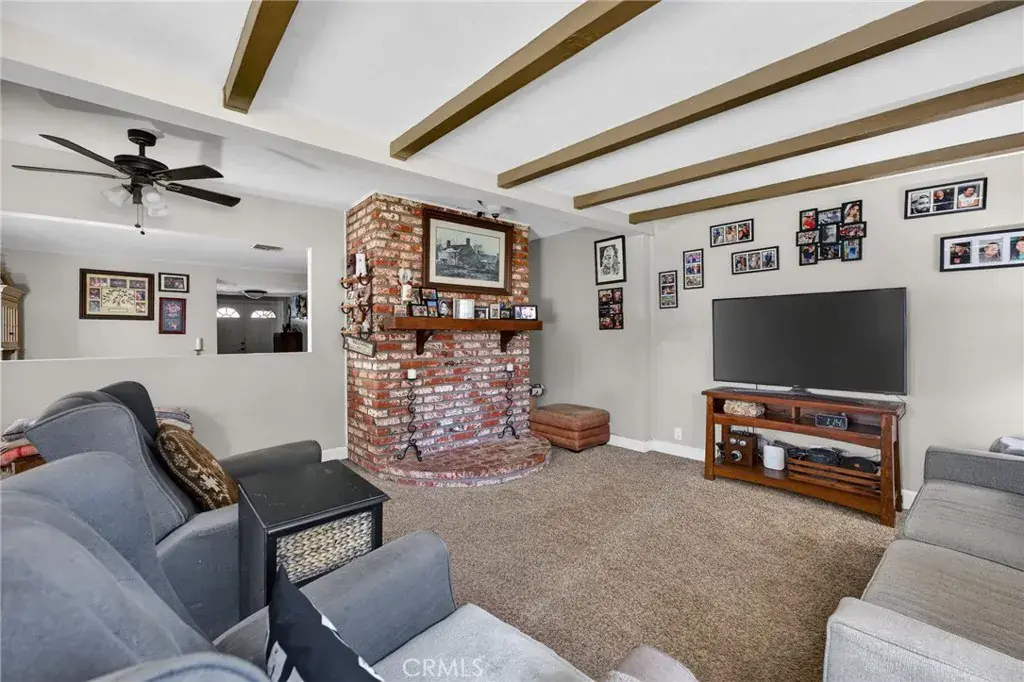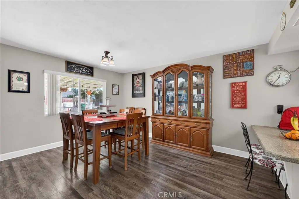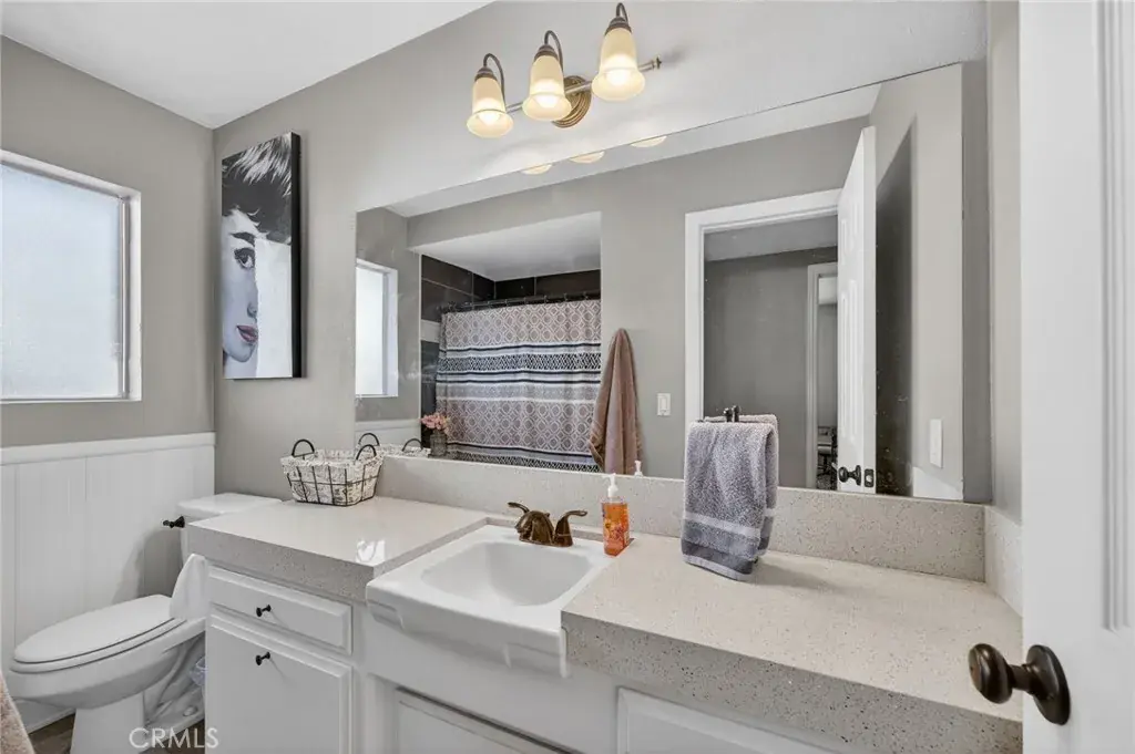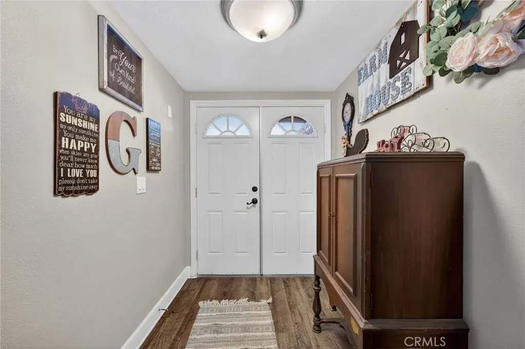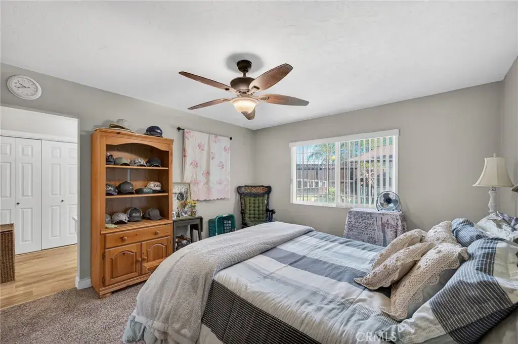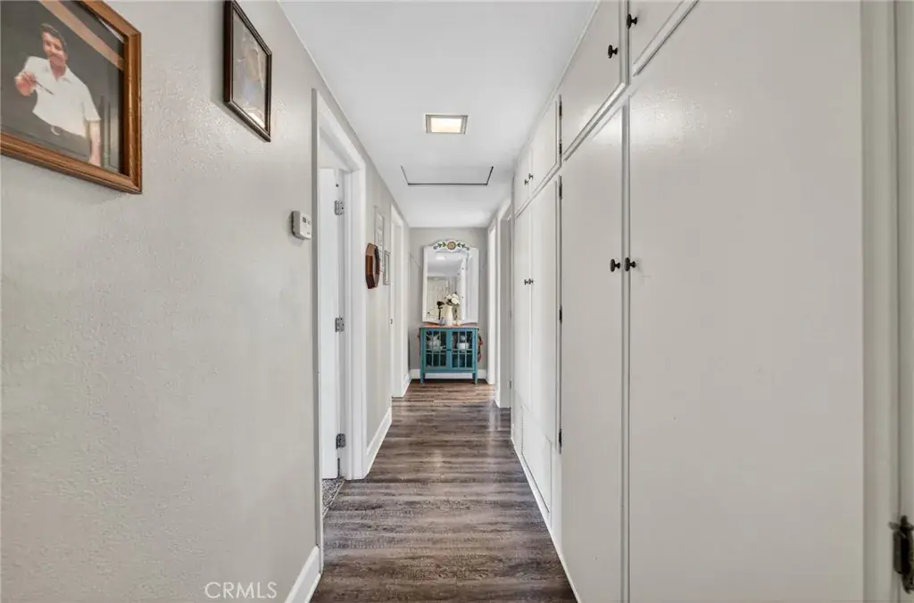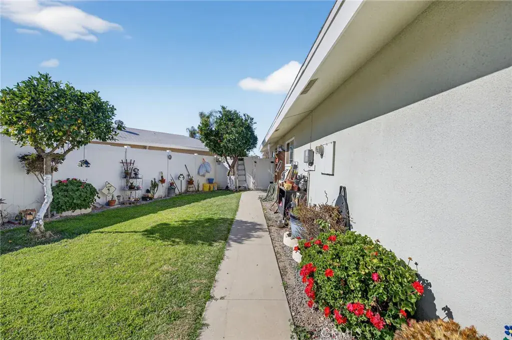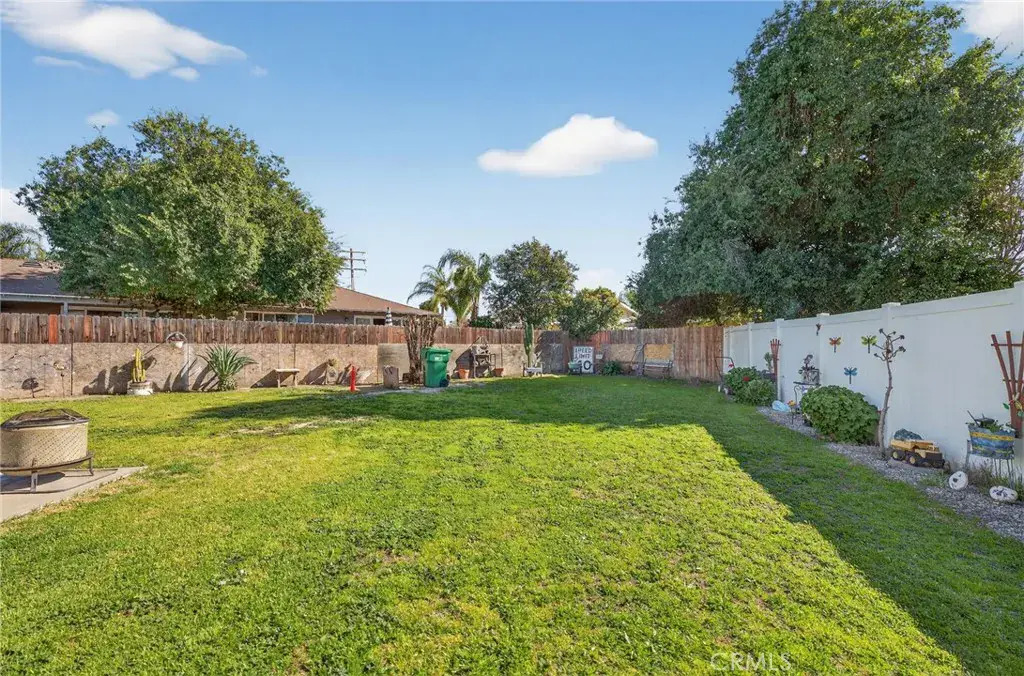 The kitchen offers ample storage including a walk-in pantry, while the bathrooms showcase tastefully accented tile showers. The spacious primary bedroom features dual closets, and all bedroom closets are equipped with lighting. Additional highlights include abundant closet space, a 40-gallon wall-mounted hot water tank that preserves garage floor space, and a two-car attached garage with laundry area, utility sink, and overhead storage. The expansive backyard is large enough to accommodate a pool, and also features mature pomegranate, lemon, and orange trees, offering both function and outdoor enjoyment.