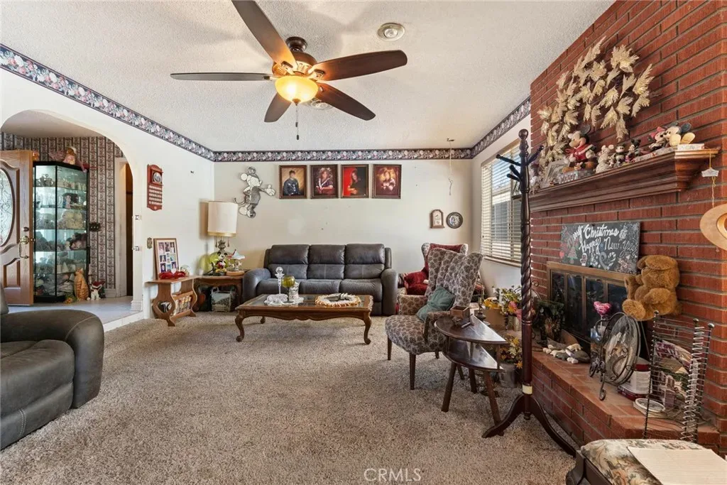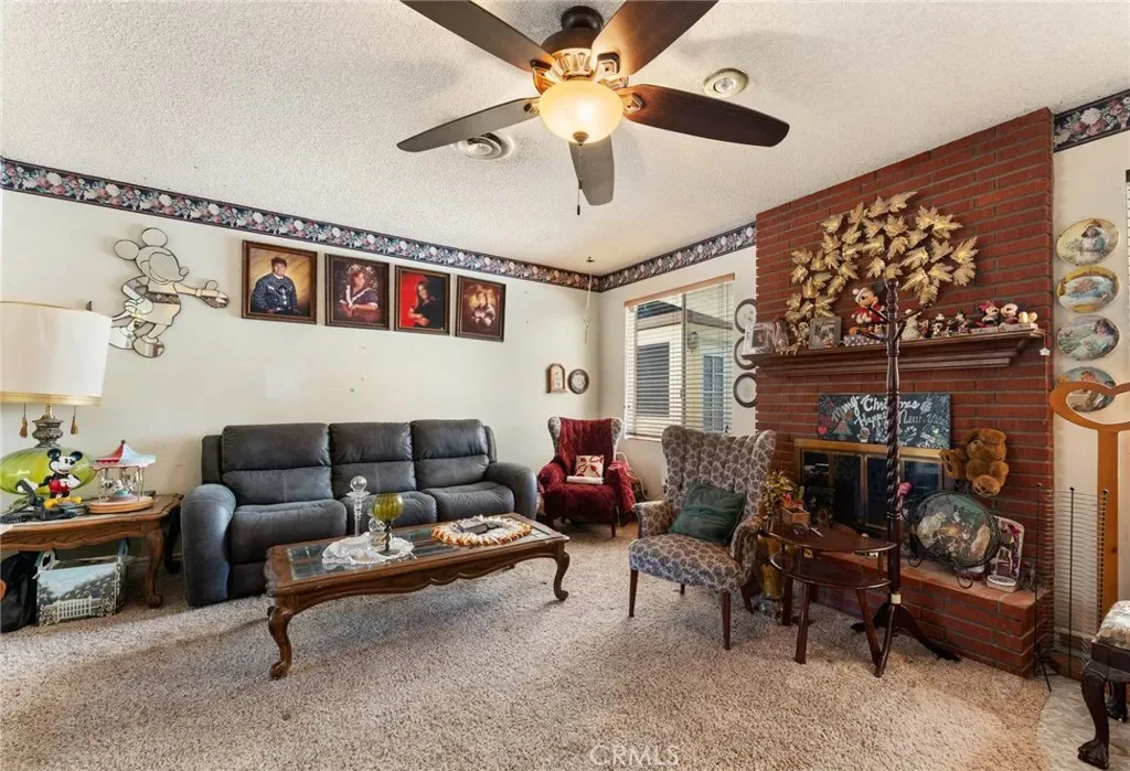 The home offers generous living areas with new carpet in the living room and hardwood floors throughout, complemented by ceiling fans for added comfort.