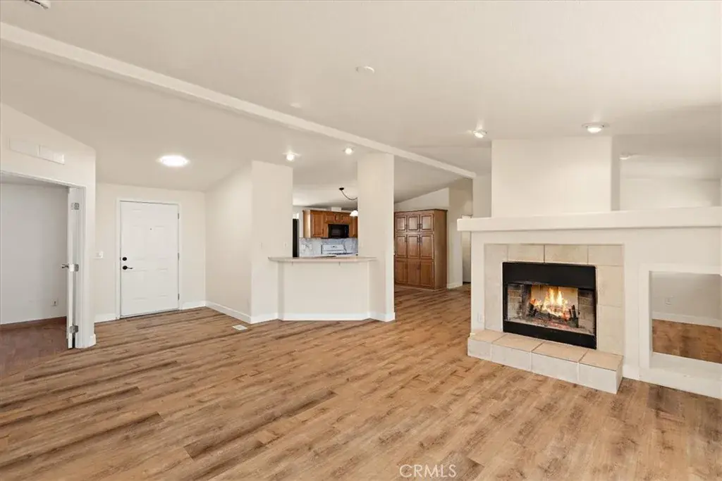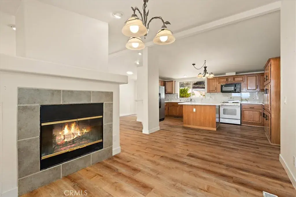 The open-concept floor plan is highlighted by large windows that fill the home with natural light and frame the picturesque views. The kitchen offers ample counter space and cabinetry, ideal for both everyday living and entertaining. The inviting living room features a cozy atmosphere perfect for relaxing or hosting family gatherings.