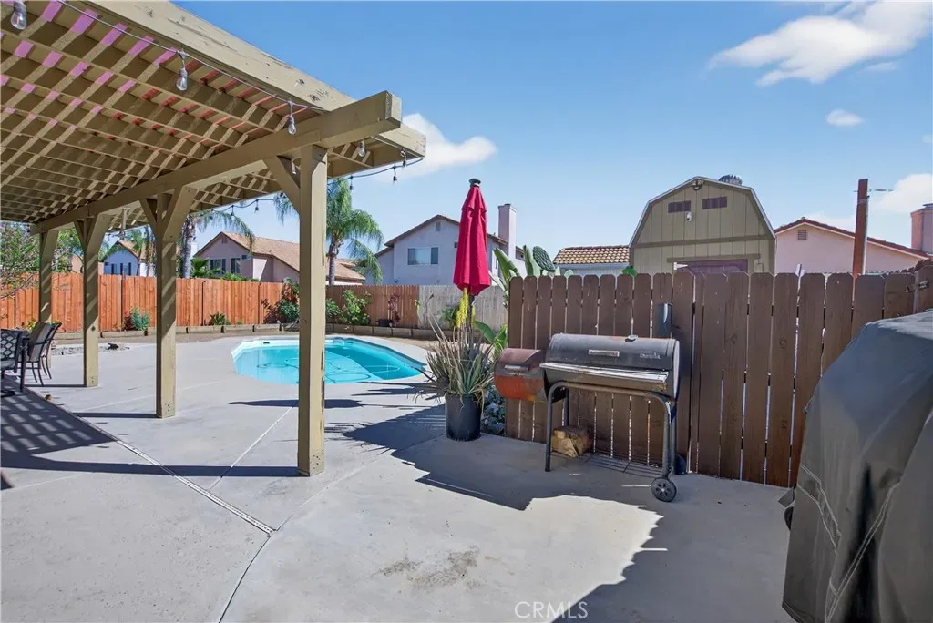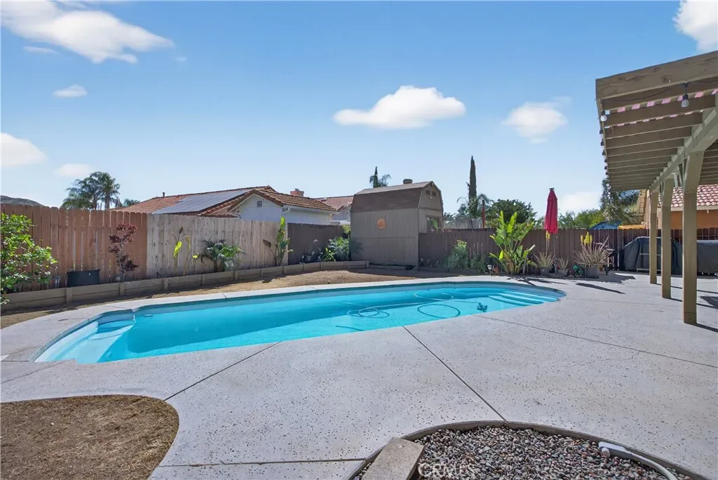Welcome to Brookside Drive — an inviting, move-in ready home that welcomes you with high ceilings, elegant laminate flooring, and a custom staircase. Ideal for entertaining, the floor plan includes a spacious living room plus a separate den. The remodeled kitchen overlooks a sparkling swimming pool, making indoor-outdoor living effortless. Practical features include a whole-house fan for quick cooling, a convenient downstairs bathroom and laundry, and four bedrooms with two full baths upstairs. The large backyard offers an awning, pool, storage shed, and plenty of space to relax and entertain. A must-see — you won’t be disappointed.
