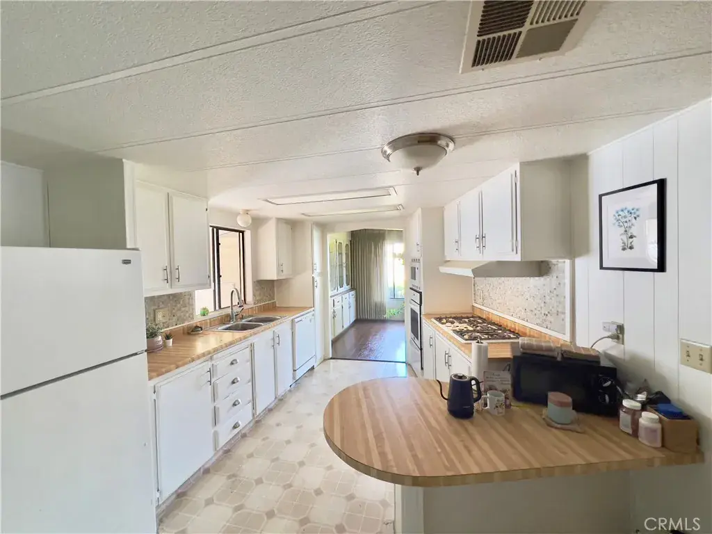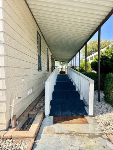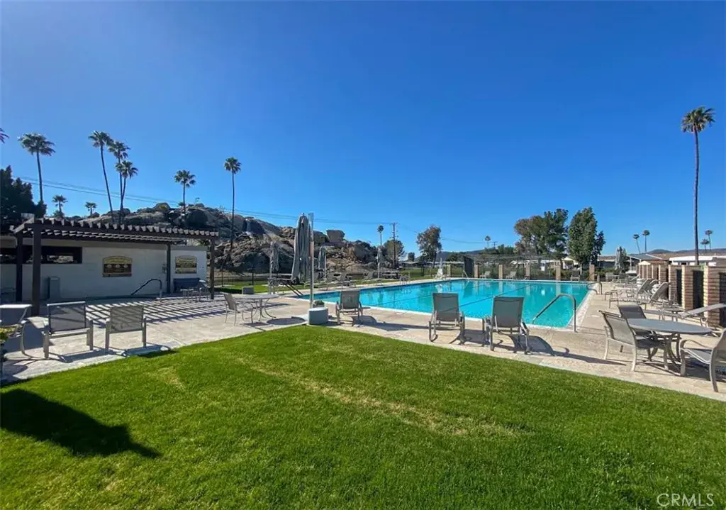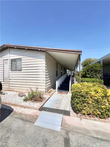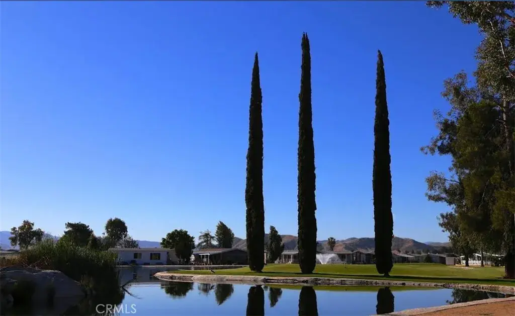 Welcome to the luxurious, golf resort, 55+ community of The Lakes at Hemet West. This is more than a home, it is a lifestyle, with endless opportunities, community activities, swimming pool, golf courses, billiard rooms, dog park, lakes, waterfalls, walking trails and so much more. Living in a luxurious lifestyle, yet affordable, clean, comfortable home with amazing views! Double wide with customized ADA ramp leads to long, wide front porch, sliding door for easy, safe, convenient entry. Step inside to the large open living area, featuring two living rooms, one with fireplace, can use as loft or office space, and a sliding door which brings in natural lighting into your home. And the other living room features with beautiful view of mature trees shading, The lush green belt and views of the distant hills. Exceptionally quiet location, good front porch view of the golf course. Plenty of extra storage in the spacious kitchen. Each of the 2 bedrooms has its own bathroom for privacy & convenience. One of the bathroom features a separate shower & large bathtub. Both bathrooms recently install new plumbings. All bedrooms with large closet space. Laundry room in the hallway, Bosch gas dryer, linen closet & ironing area. Laundry room can exit to the carport, and enter back inside the home after all your outings! Cozy breakfast counter bar area in the kitchen. Right next to the spacious kitchen is formal dining area with built in cabinets, and large picture framed windows looking outside the green grass area.