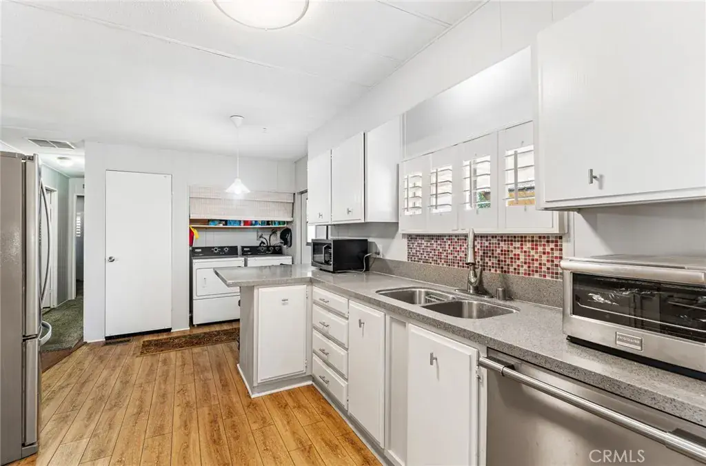 Price Improvement! Seller is Motivated! Step into your dream retreat with this stunningly renovated 2-bedroom, 2-bath mobile home that perfectly blends modern luxury with the charm of a vibrant 55+ golf resort community. From the moment you enter, you’ll be greeted by a fresh canvas of new paint and sleek flooring, accentuated by elegant plantation shutters that invite natural light to dance through the space. The heart of this home is a brand-new kitchen, featuring stainless steel appliances and exquisite Corian countertops, making it a chef’s paradise where culinary creations come to life. Enjoy the convenience of indoor laundry and a custom cut-out rug that protects the beautiful faux wood flooring. Retreat to the chic primary suite, a true sanctuary boasting double sinks and vanities in a spa-like bathroom that whispers relaxation. Embrace the joys of outdoor living on your charming renovated front porch or in the darling backyard, complete with a rustic farmhouse vibe and welcoming wood fence and gates. With a roof that’s only 7 years old and an AC and water heater that are under 10 years, peace of mind is yours. Located in The Lakes at Hemet West, you’ll have access to a wealth of amenities—from five shimmering lakes and cascading waterfalls to state-of-the-art pickleball courts and scenic walking trails. Engage in lively social events at the updated clubhouse, enjoy games of billiards or shuffleboard, and revel in live music and dancing that build a true sense of community. This is not just a home; it’s a lifestyle of friendship, fun, and tranquility waiting to be embraced. Don’t miss your chance to experience the best of resort-style living!