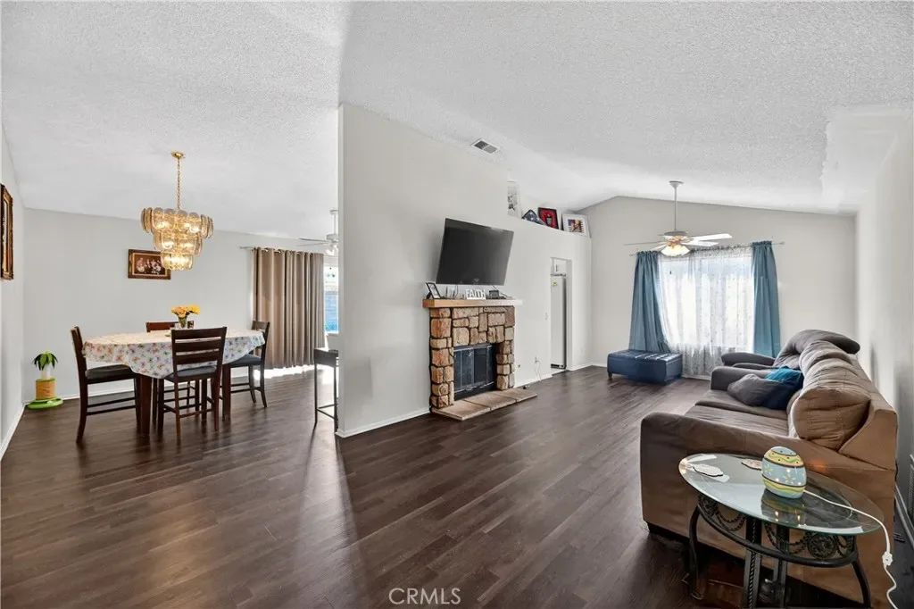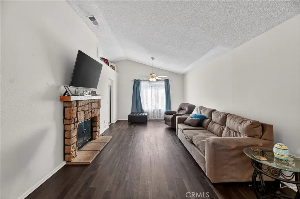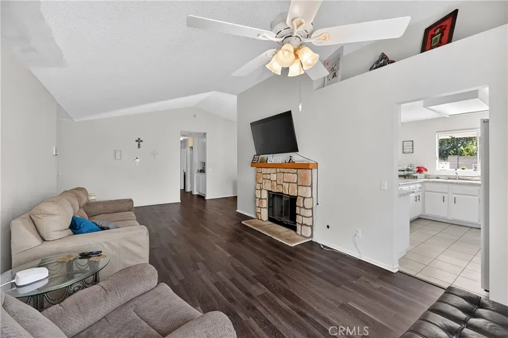 Beautiful 3-bedroom, 2-bath home located in a great area of Hemet — This home has a two-car garage with additional driveway space, offering plenty of parking. Inside, you’ll find laminate wood flooring throughout and an open floor plan that brings in an abundance of natural light. The kitchen features bright white cabinetry, a breakfast bar for additional seating, and a clean, refreshed feel. The bathrooms offer shower/tub combinations, and all bedrooms are generously sized. Additional highlights include a cozy fireplace, gas stove, and washer/dryer gas hookups conveniently located in the garage. The backyard is ideal for entertaining, complete with a barbecue area, patio, and retractable awning. There’s also a large detached structure in the backyard — perfect for a workshop, bonus room, man cave, or even future ADU potential. A solid home with great features and room to make it your own.