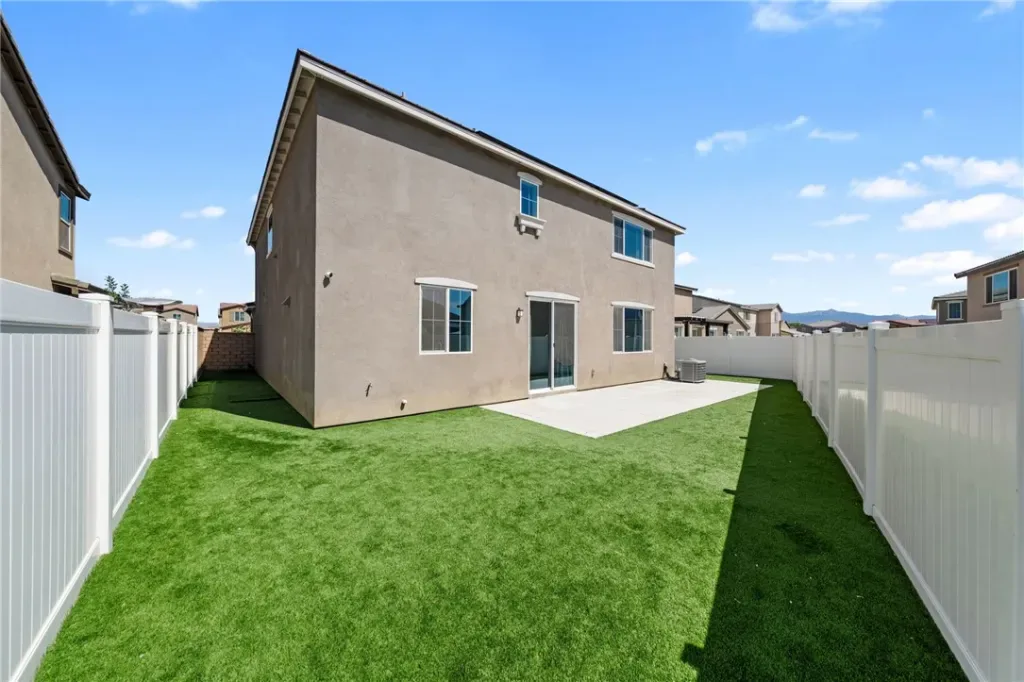 Step outside to a low-maintenance backyard featuring newer artificial turf and durable vinyl fencing, providing a private and clean outdoor space to relax or entertain.