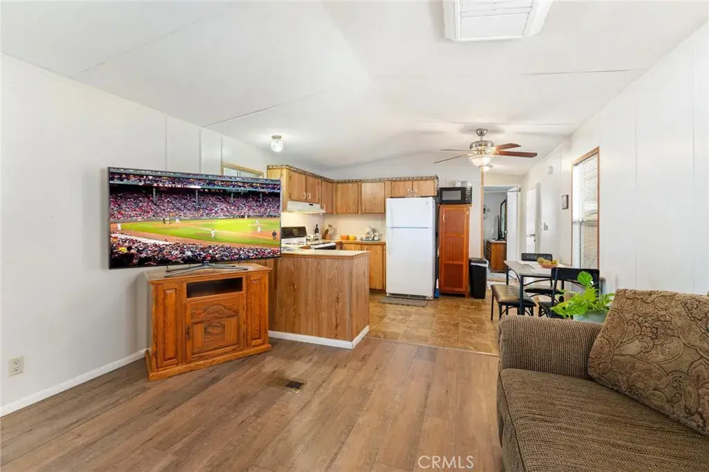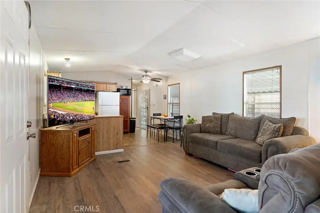 This perfect 2 bedroom 2 bathroom mobile home is located in Juniper Terrace 55+ senior community. Ready for new owners! Home has been loved and taken care of. Light and bright open concept with laminate floors. Each bedroom is ample in size and are on opposite sides of the home. Outside patio is open to outside living, enjoy a cup of coffee or glass of wine on porch. Carport could accommodate 3 cars. Shed stays.