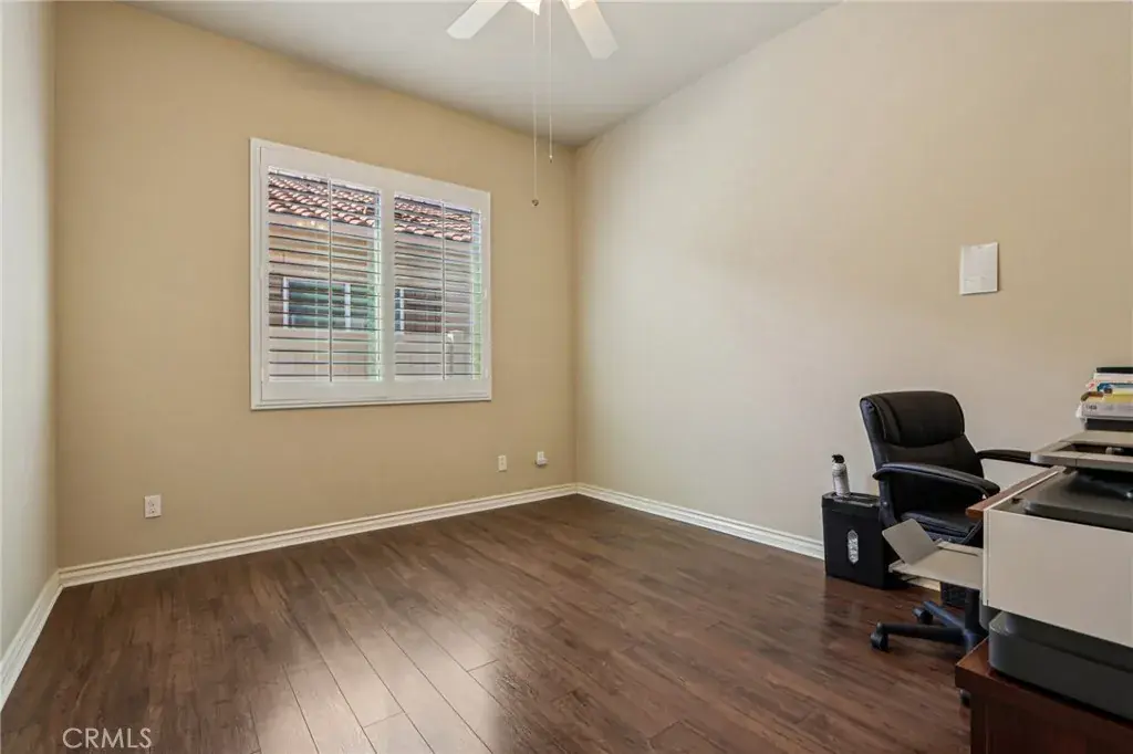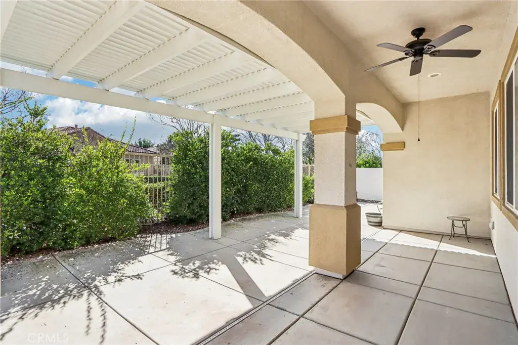 Homes on the Paseo in the 55+ Solera Diamond Valley Community rarely become available — and this is one you don’t want to miss. Backing directly to the community walking path this special lot offers open space, added privacy, and a peaceful setting that truly sets it apart. Beautiful drought-tolerant landscaping creates impressive curb appeal while keeping maintenance simple. Inside, the open-concept floor plan is light, airy, and designed for comfortable everyday living. Tile flooring flows through the main areas, plantation shutters add timeless character, and upgraded flooring warms the bedrooms and den/office. The kitchen is both functional and inviting, featuring stainless steel appliances, granite countertops, a full tile backsplash, bartop seating, and a spacious walk-in pantry. Refrigerator, washer, and dryer are included for a seamless move-in experience. This thoughtfully designed layout offers 2 bedrooms, 2 baths, and a versatile den/office. The primary suite is generously sized with an oversized walk-in closet and a bathroom complete with both a soaking tub and step-in shower. The laundry room includes additional storage cabinets for added convenience. Step outside and enjoy the lifestyle that makes Solera Diamon Valley so desirable. The backyard opens directly to the Paseo and is enhanced by a pergola and California patio cover — perfect for morning coffee, evening gatherings, or simply enjoying the quiet surroundings. The side yard features low-maintenance artificial turf for added flexibility and ease. A rare Paseo location combined with quality upgrades and effortless indoor-outdoor living makes this home stand out in all the right ways.