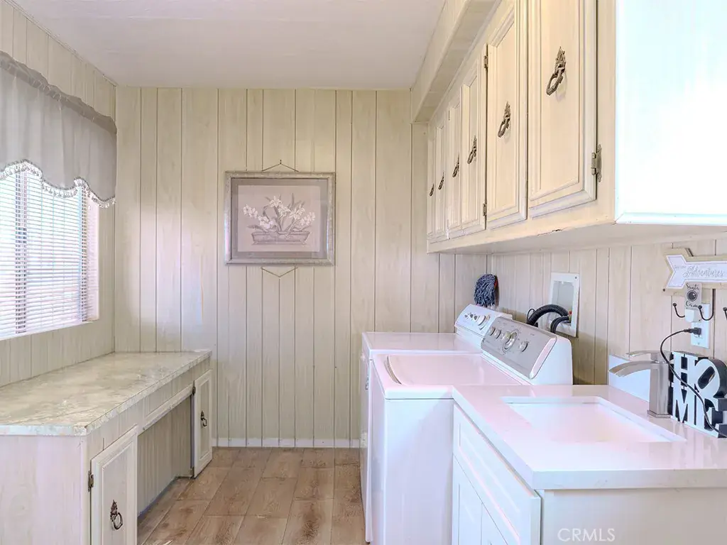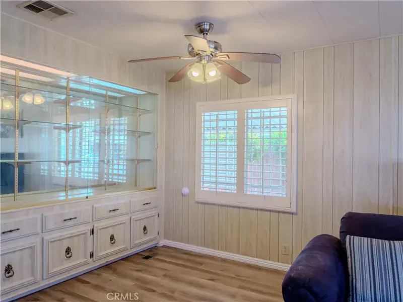 Discover this beautifully upgraded senior manufactured home on attached land, featuring new flooring, elegant plantation shutters, and a stylish wet bar. Enjoy a new garbage disposal, upgraded plumbing, modern bathroom vanity, and spacious laundry cabinets. The covered carport adds convenience, and you’ll love being close to shopping, the 10, 215, and 60 freeways. With low HOA fees and breathtaking mountain views, this is the perfect place to call home.